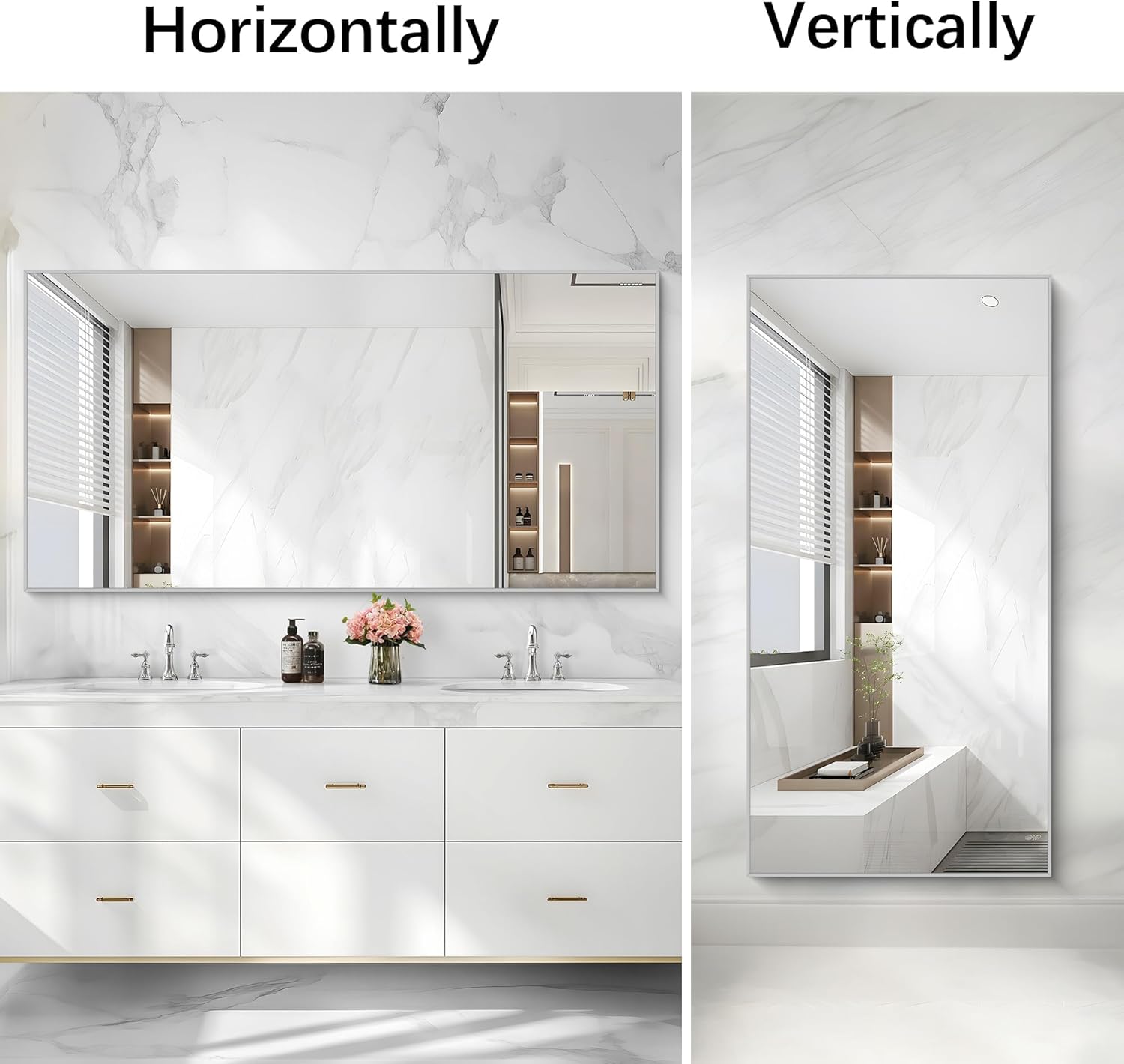 Silver Bathroom Mirror for Wall, 30x60 Inch Rectangle Mirrors with Metal Frame, Modern Vanity Large Wall Mirror for Bathroom Living Room, Entryway Hangs Horizontal or Vertical