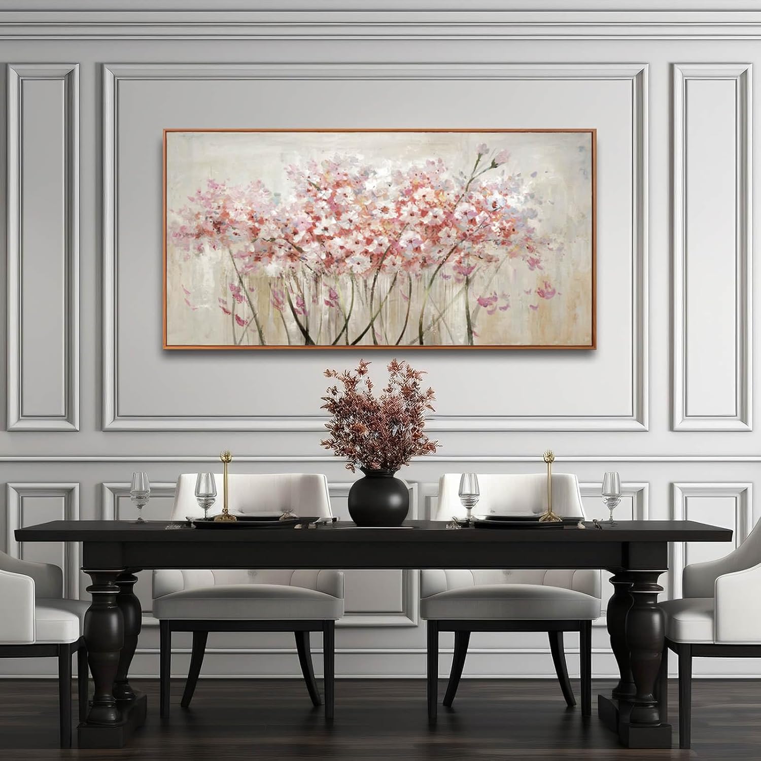 - Size and Package: White and pink pictures wall decor approx 24"x 48"; Suitable size makes it a great nature decor addition to your home. Easy to hang - All Signs Come With Pre-Installed Hooks.