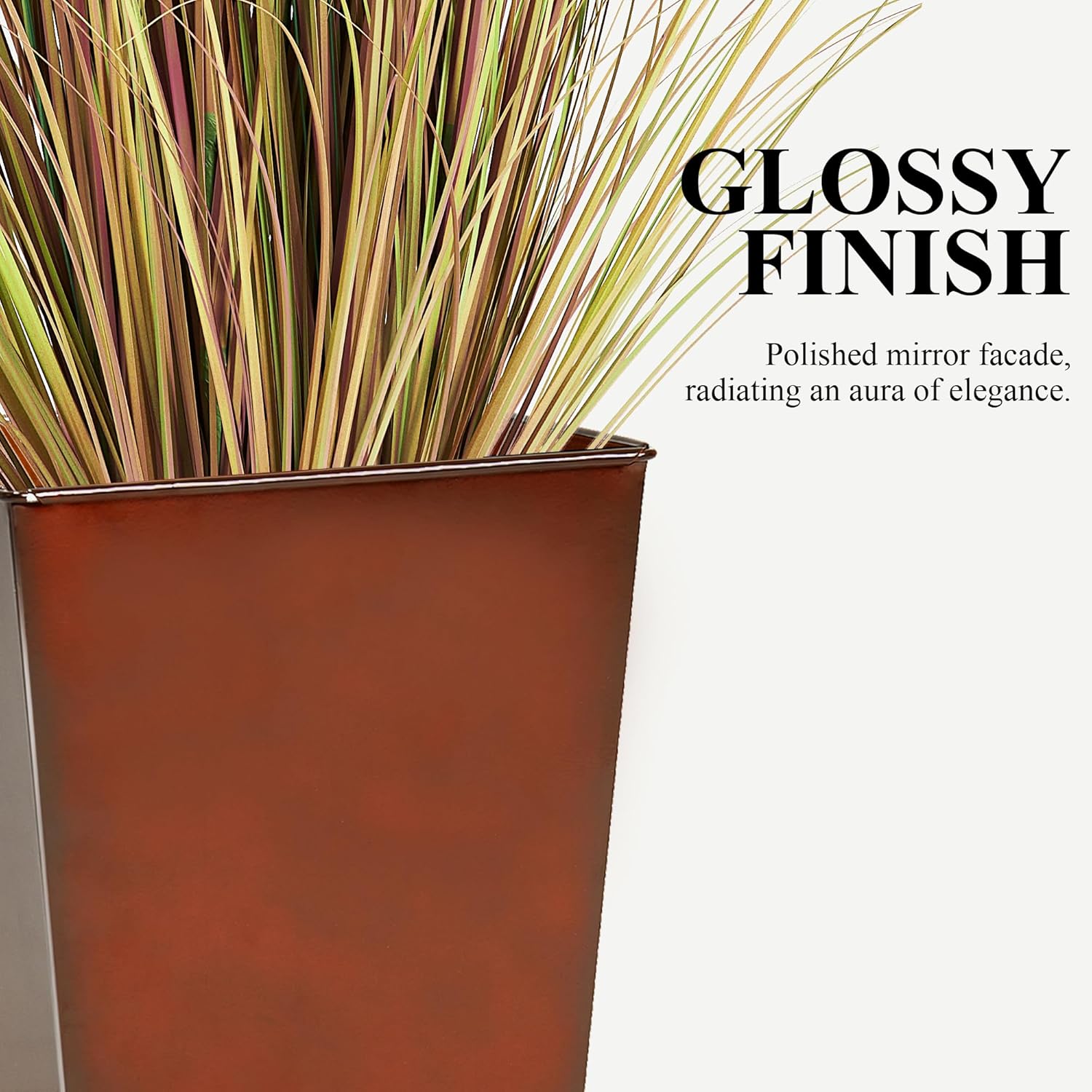 Worth Garden Large Metal Glazed Floor Planter Set of 2-14" Dia x 18" H - Luxurious Glossy Finish Red Tall Square Tapered Steel Plant Pots, Decor Flower Pot Indoor & Outdoor, Drainage Hole
