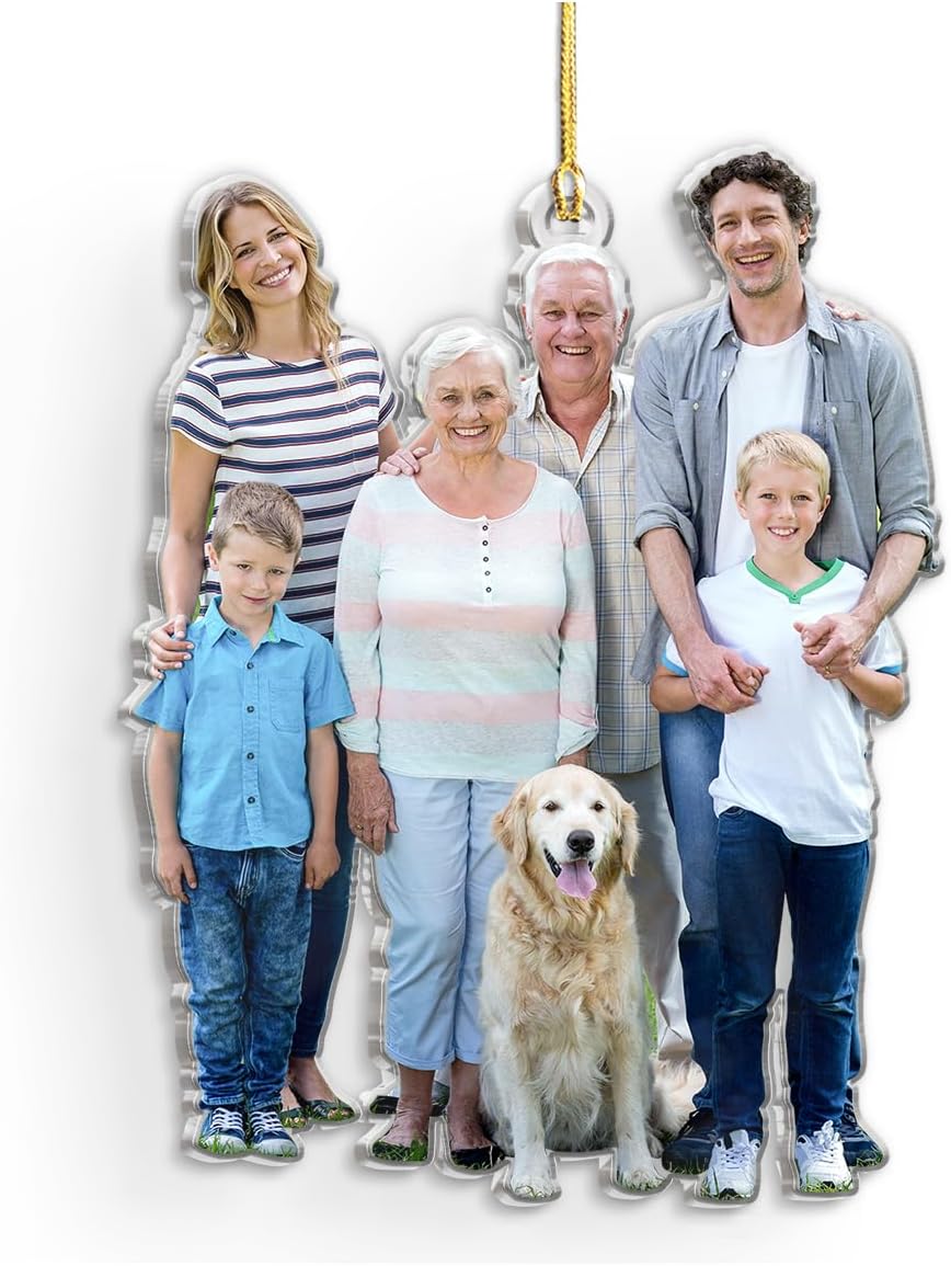 Personalized Custom Photo Acrylic Ornament - Christmas Hanging Decor for Family, Mom, Dad, Grandparents, Daughter, Son