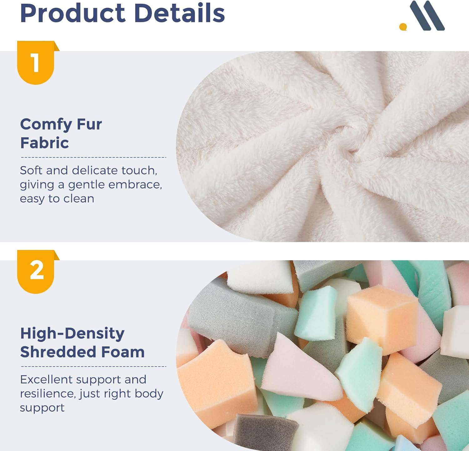 - Material Faux Fur : Fill Material Shredded Foam