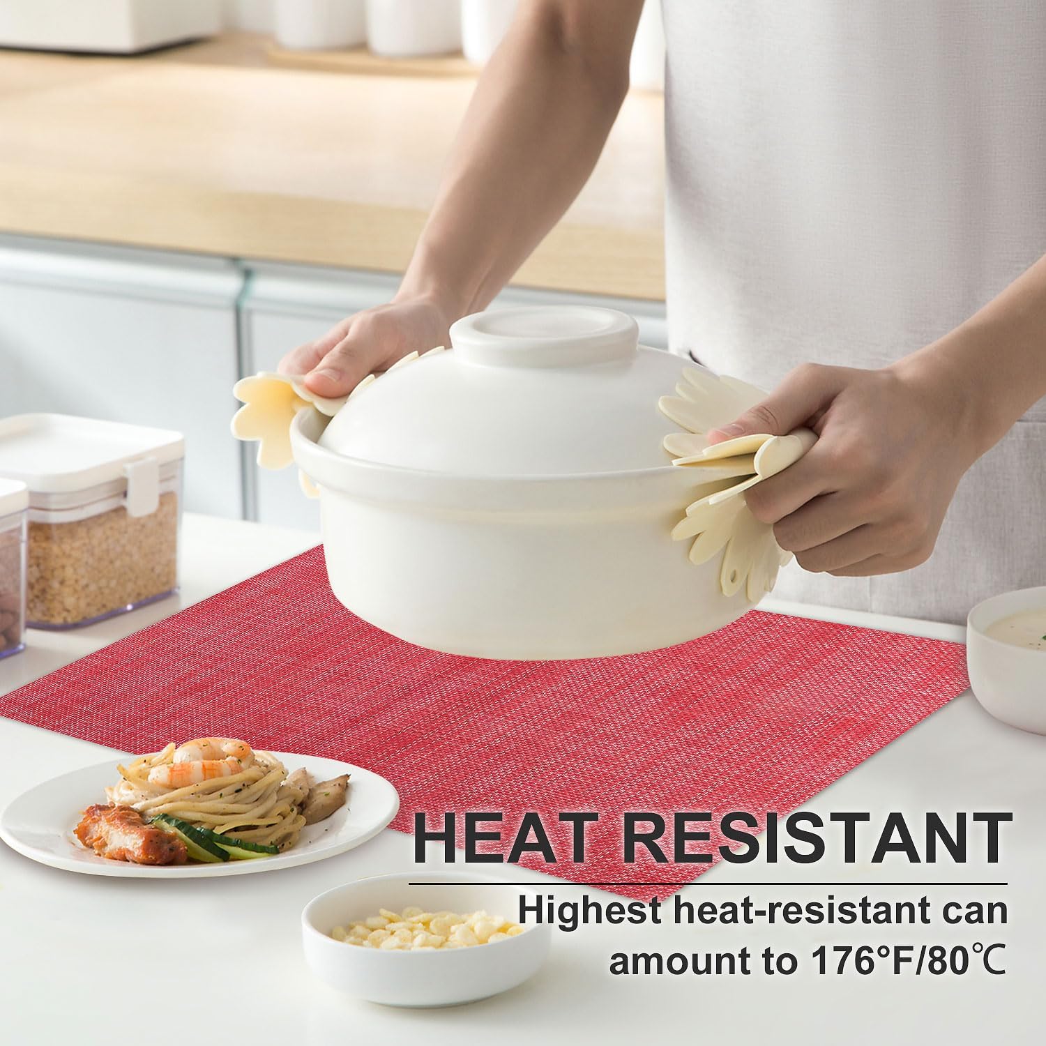 - Heat Resistant: Highest heat-resistant can amount to 176°F/80℃, they perfectly protect your table from food and heat. Add style to your dining setting while ensuring table protection. NOT waterproof