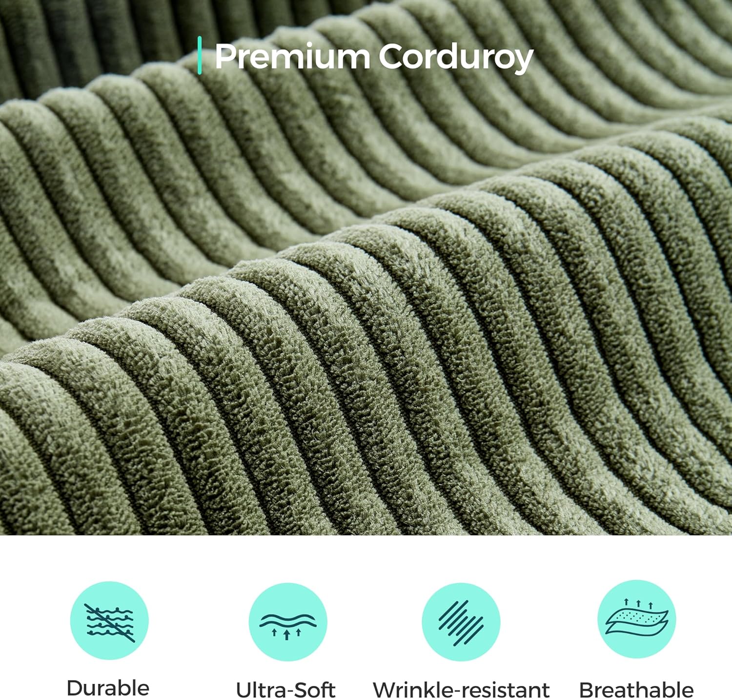 LINSY HOME Modular Sectional Sofa, 105" Boneless Couch U Shaped 3-Seat Sofa with 2 Ottomans, Corduroy Sectional Cloud Couches for Living Room, No Assembly Required, Green