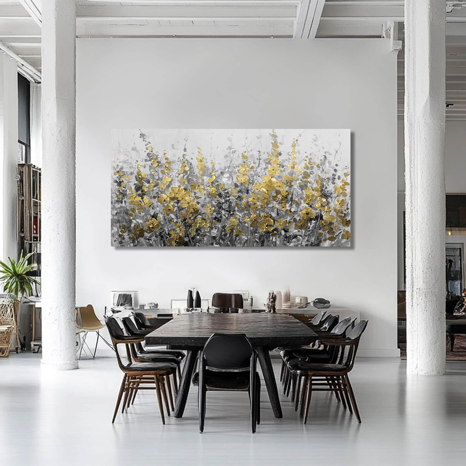 - Canvas wall art size: Grey and yellow pictures home decor is 29x58, and the product art on the wall brings a different feeling to the space of the house.