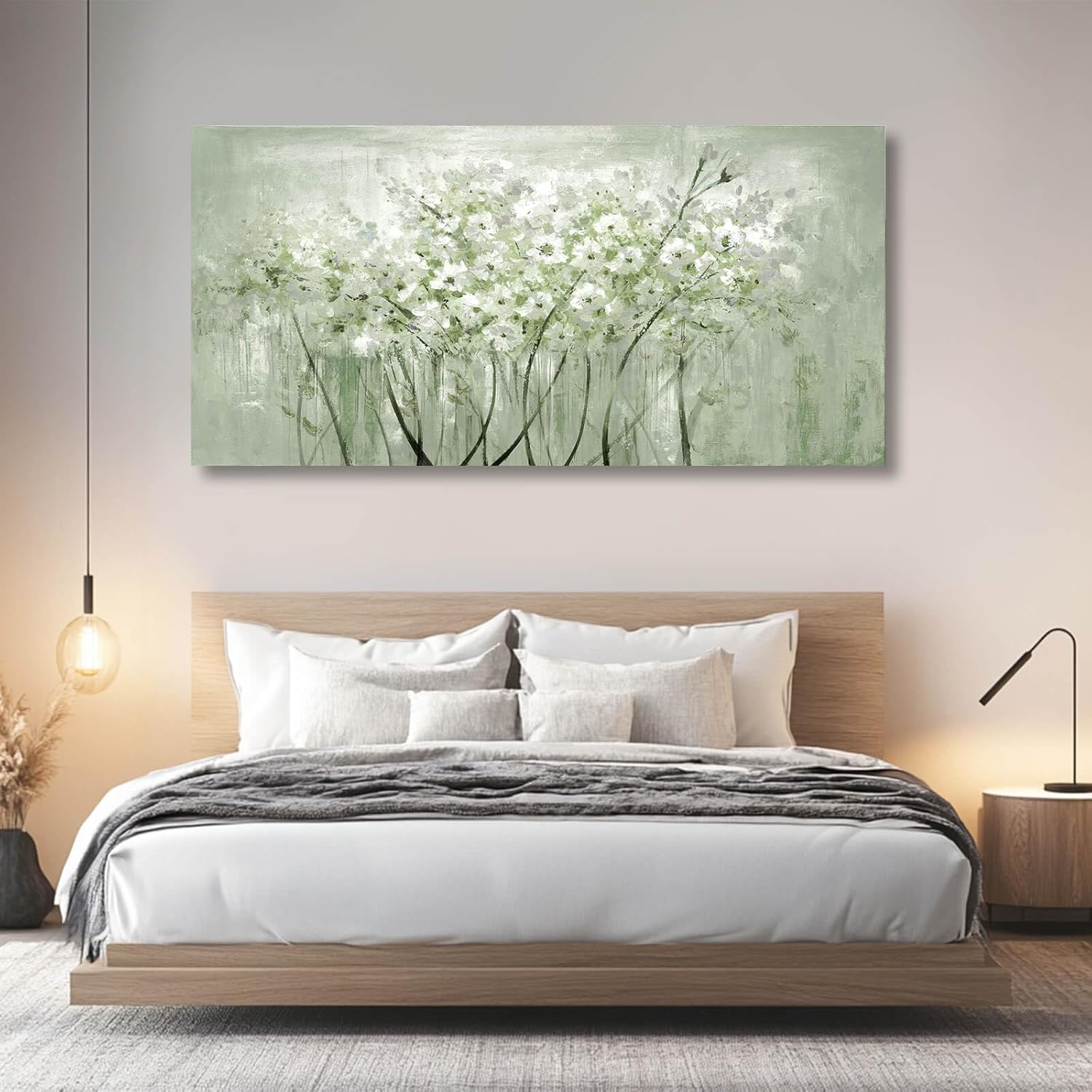MLART99 Modern Artwork Wall Decor White Flowers Picture Art 24"x48" Plant Wall Art Decorations for Living Room Office