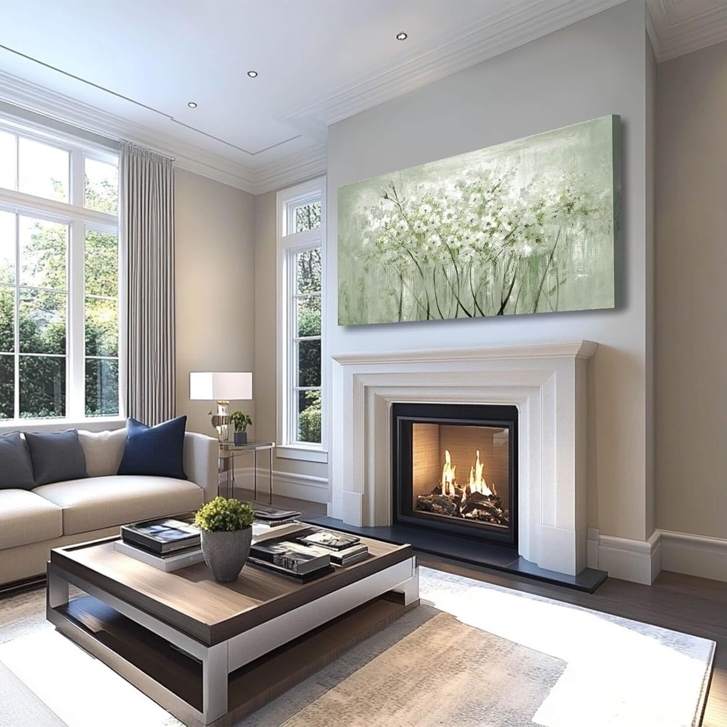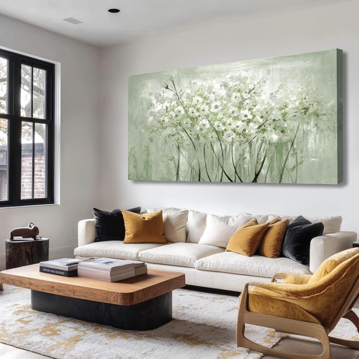 MLART99 Green and White Wall Art Home Decor Wildflower Wall Decorations Canvas Prints 29"x58" Nature Decor for Office Kitchen