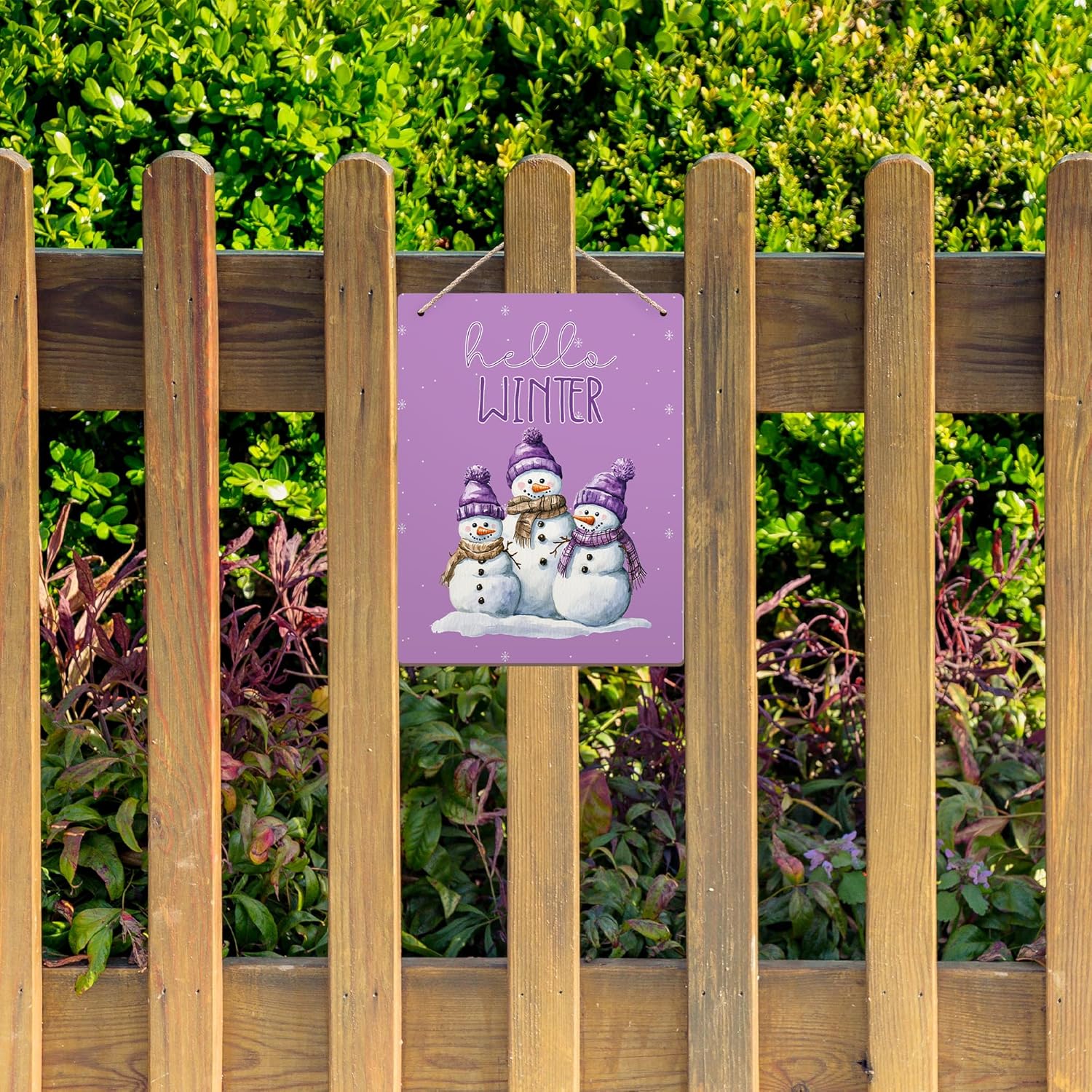 Purple Hello Winter Snowman Hanging Wooden Signs 10x8, Snowman Winter Signs, Winter Door Sign, Purple Snowman Winter Snowflakes Home Room Office Hanging Wall Decor