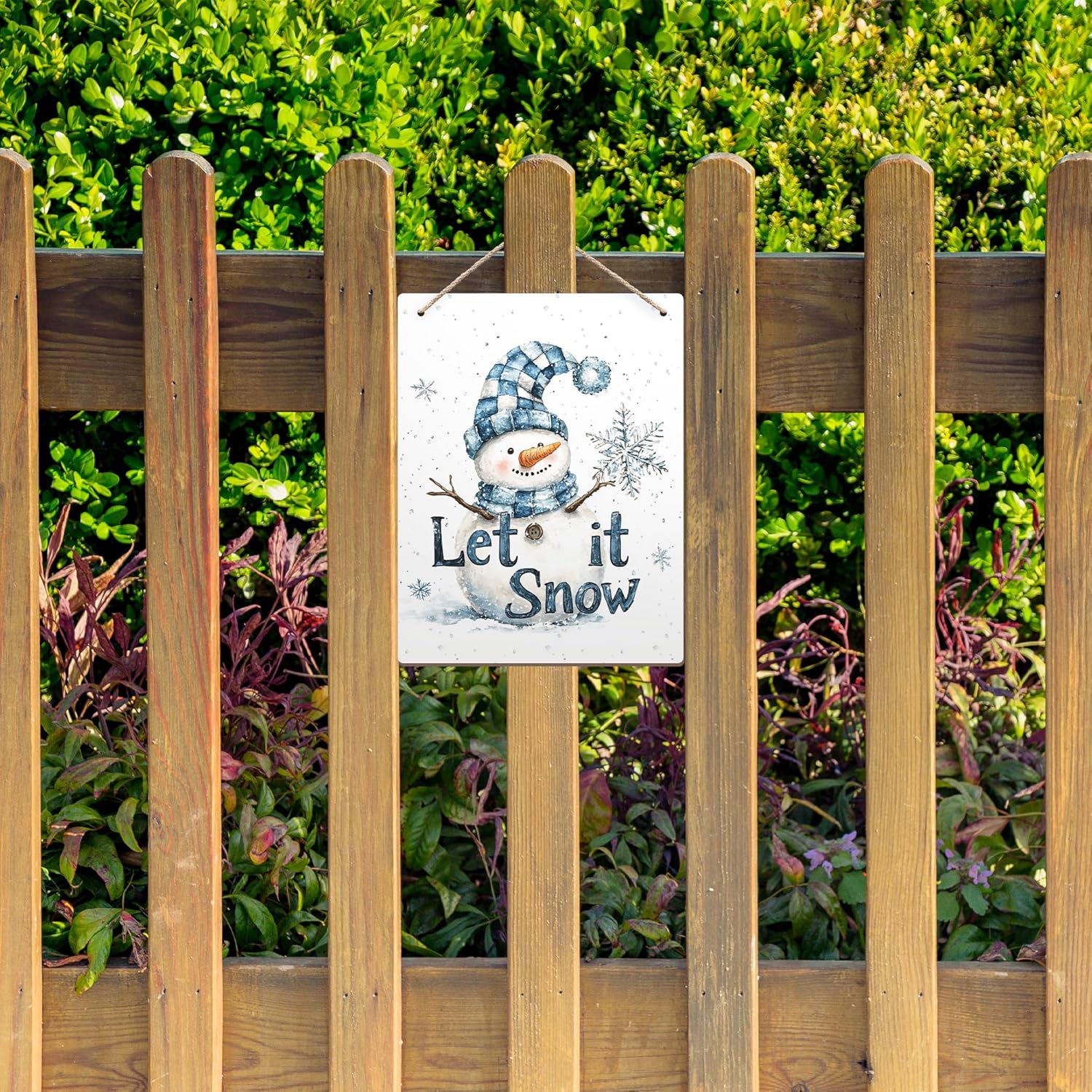Winter Snowman Hanging Wooden Signs 12x6, Let It Snow Signs, Winter Wall Decor, Winter Door Decor, Blue Snowman Winter Snowflakes Home Room Office Hanging Wall Decor