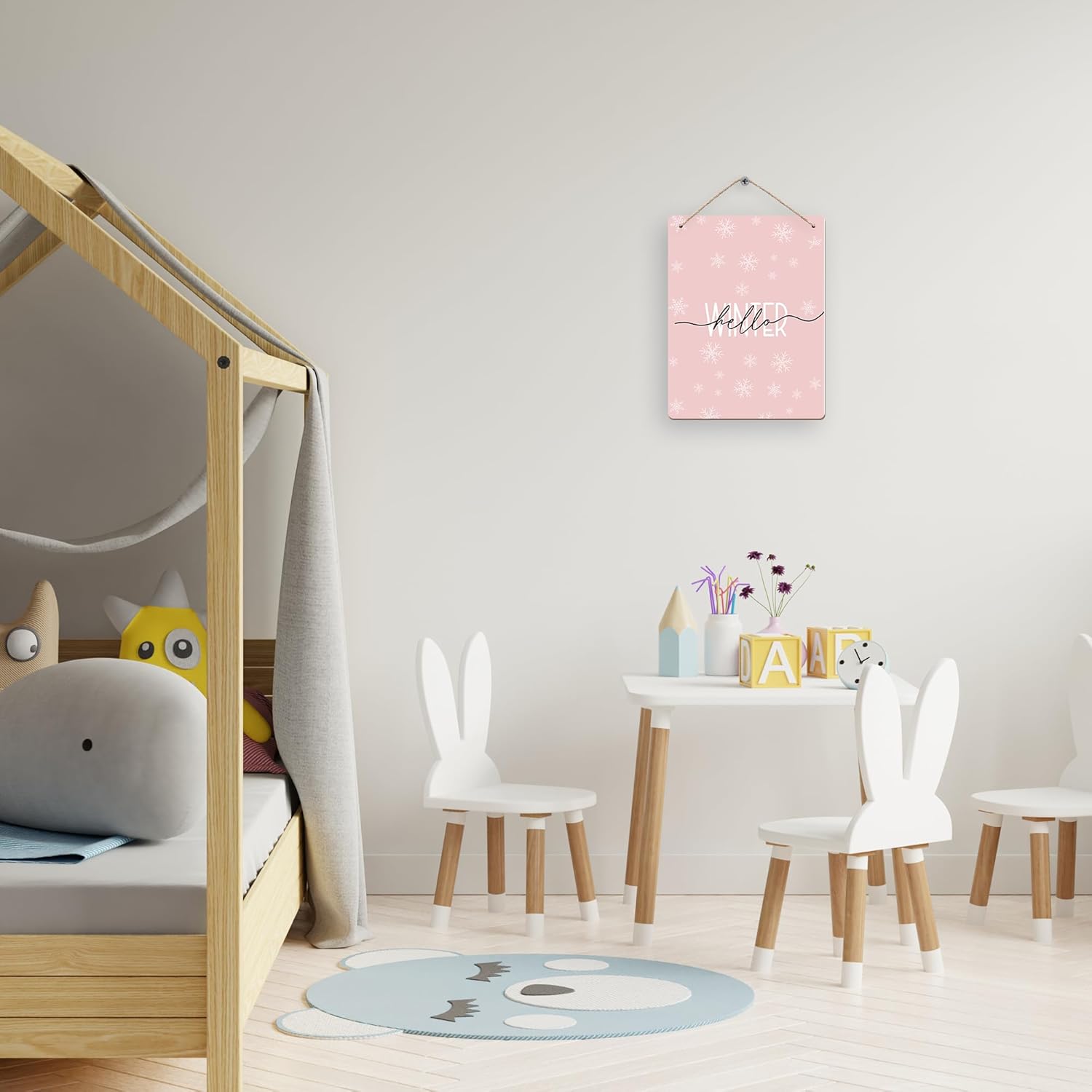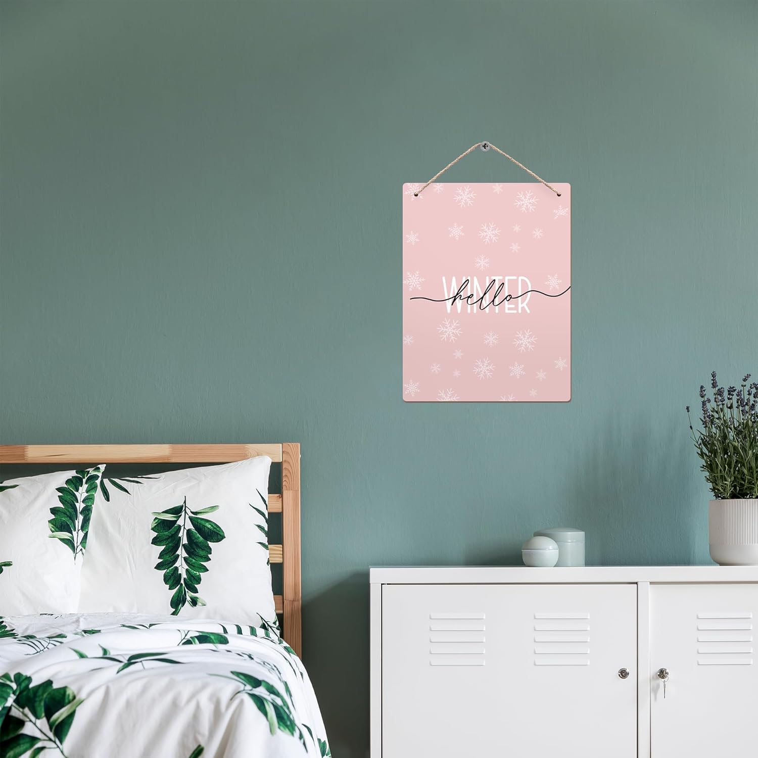 Pink Winter Snowflakes Wooden Sign, 10x8 inches, Rustic Wall Decor