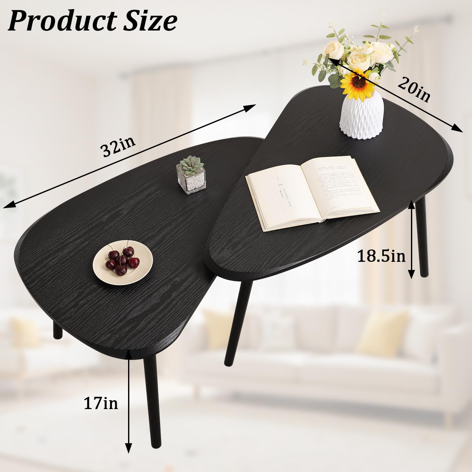 Black Nesting Coffee Tables Set of 2 End Bamboo Table for Living Room Bedroom Apartment Modern Industrial Simple Nightstand 32" D x 20" W x 18.5" H
