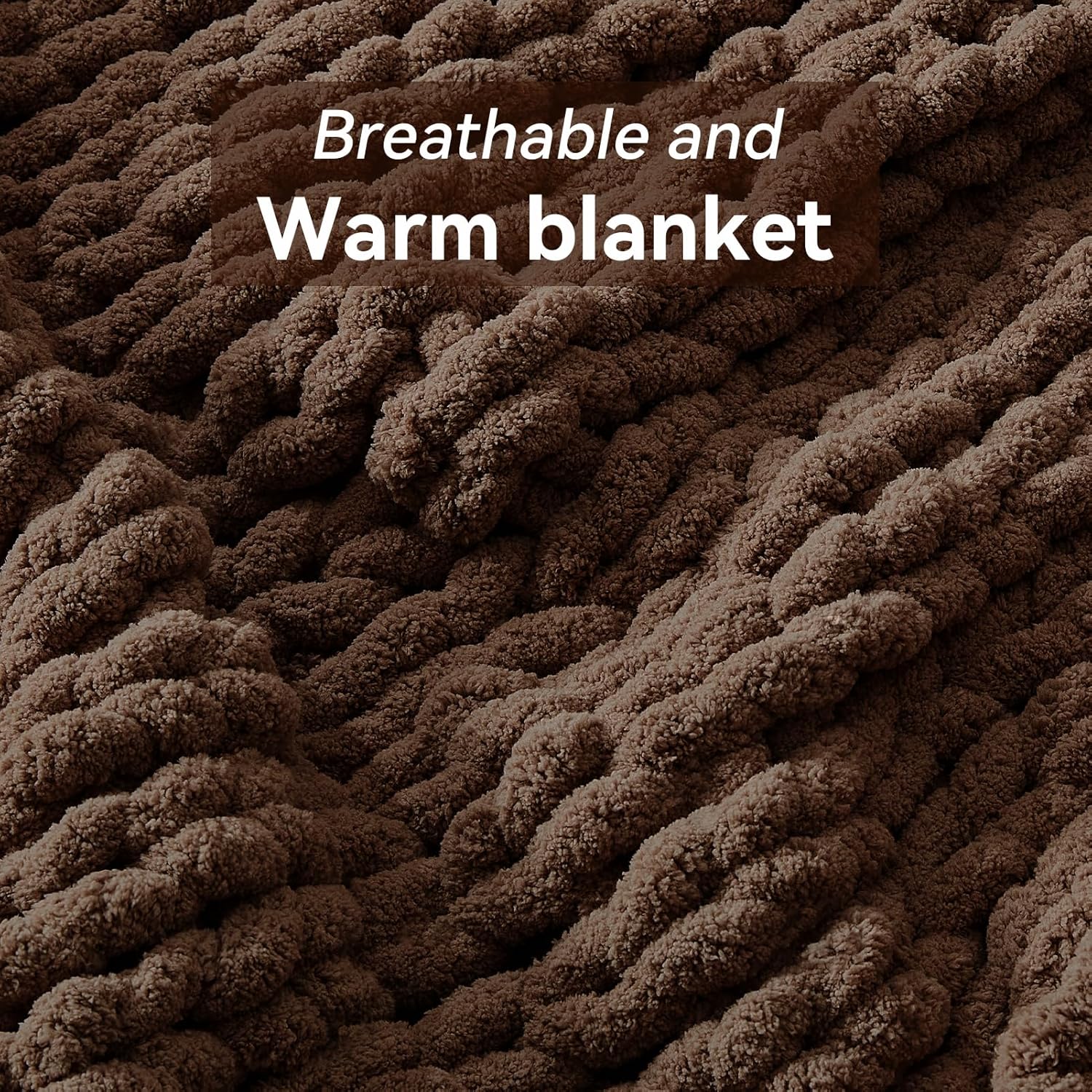 Chunky Knit Throw Blanket, 40''*50'' Knitted Throw Chenille Yarn for Bed Couch, Handmade Dark Brown Crochet Big Thick Blanket, Machine Washable Cute Comfy Blanket for Home Decor