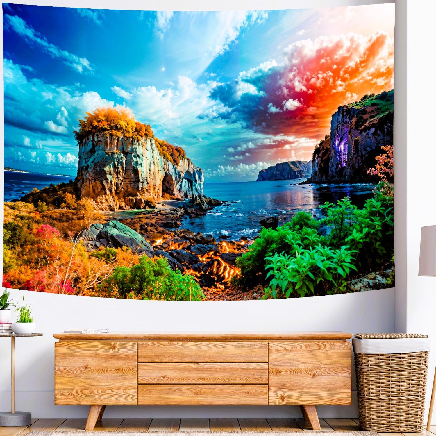 - 【ELEGANT DESIGN】This beach sunset nature tapestry adopts advanced high definition 3D digital printing technology for a more vibrant color design and crisp lines that prevents fading. Using our delicate hemming technique, this tapestry will certainly be long lasting and be able to light up your room.