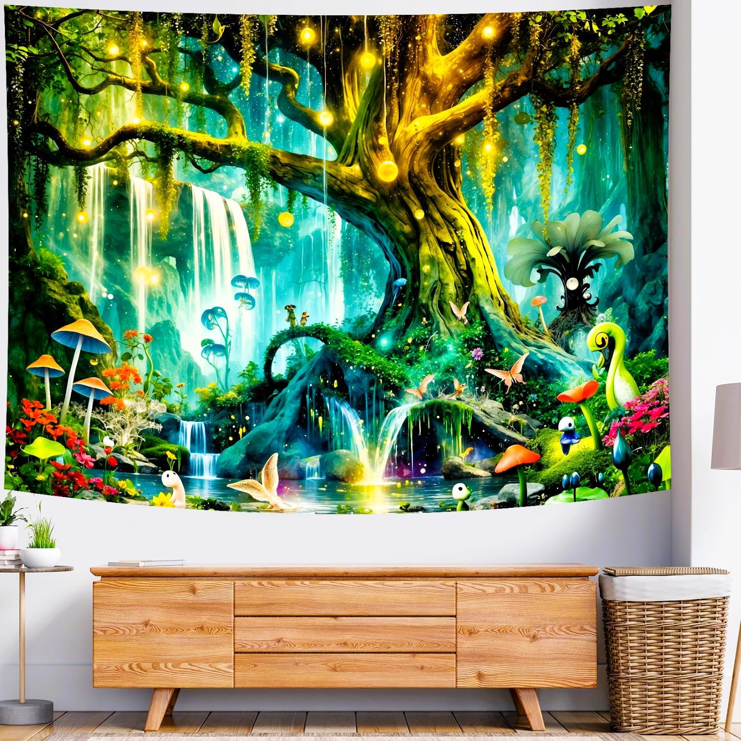 Delur Magical Forest Tapestry Fantasy Tree of Life Enchanted Fairy Tale Forest Tapestry Mystical Psychedelic Nature Landscape Wall Hanging Headboard for Bedroom Living Room Home Decor (70.8" x 92.5")