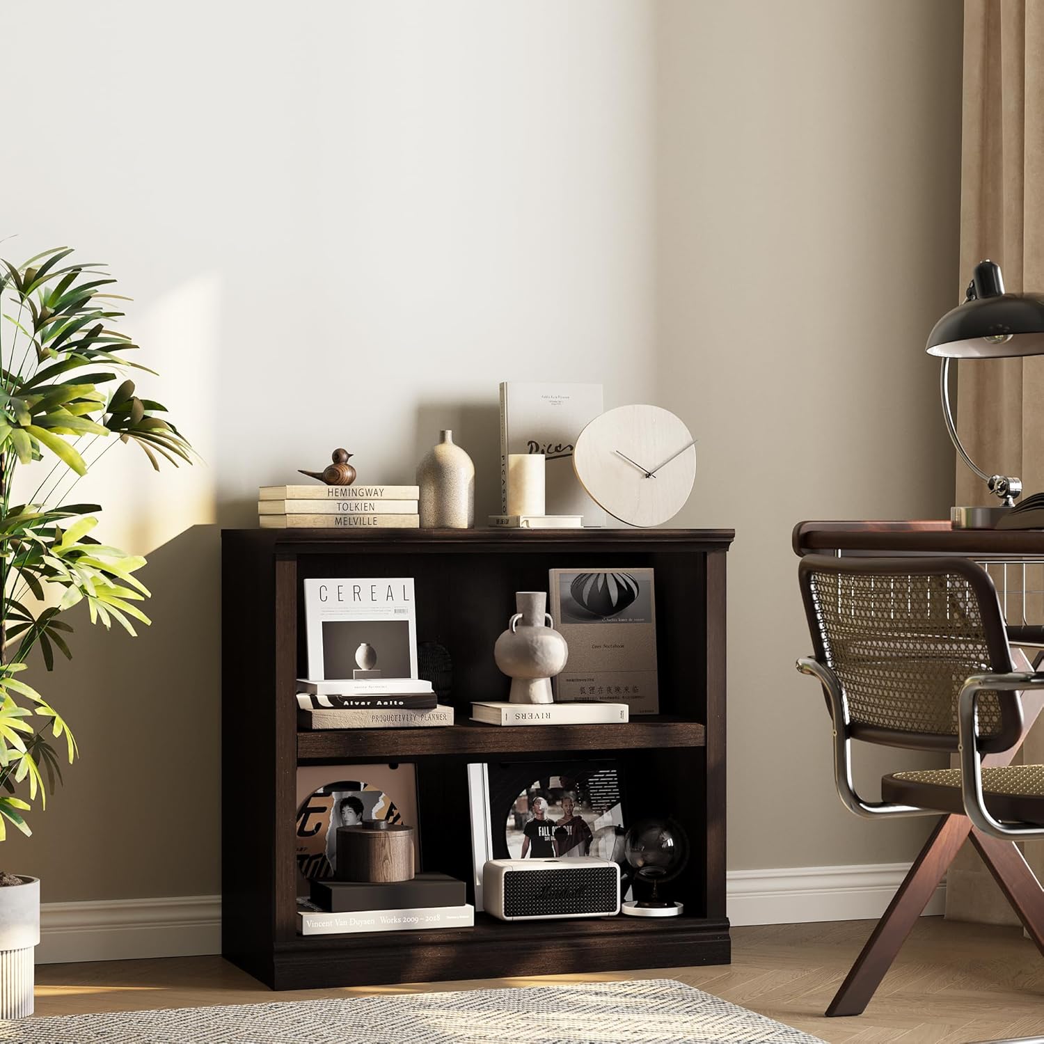Bookcase, Open Storage Book Cases/Shelves, Floor Standing Indoor Furniture 2 Shelf Book case for Farmhouse Library Office Bedroom Kids, Dark Cherry - 2 Tier