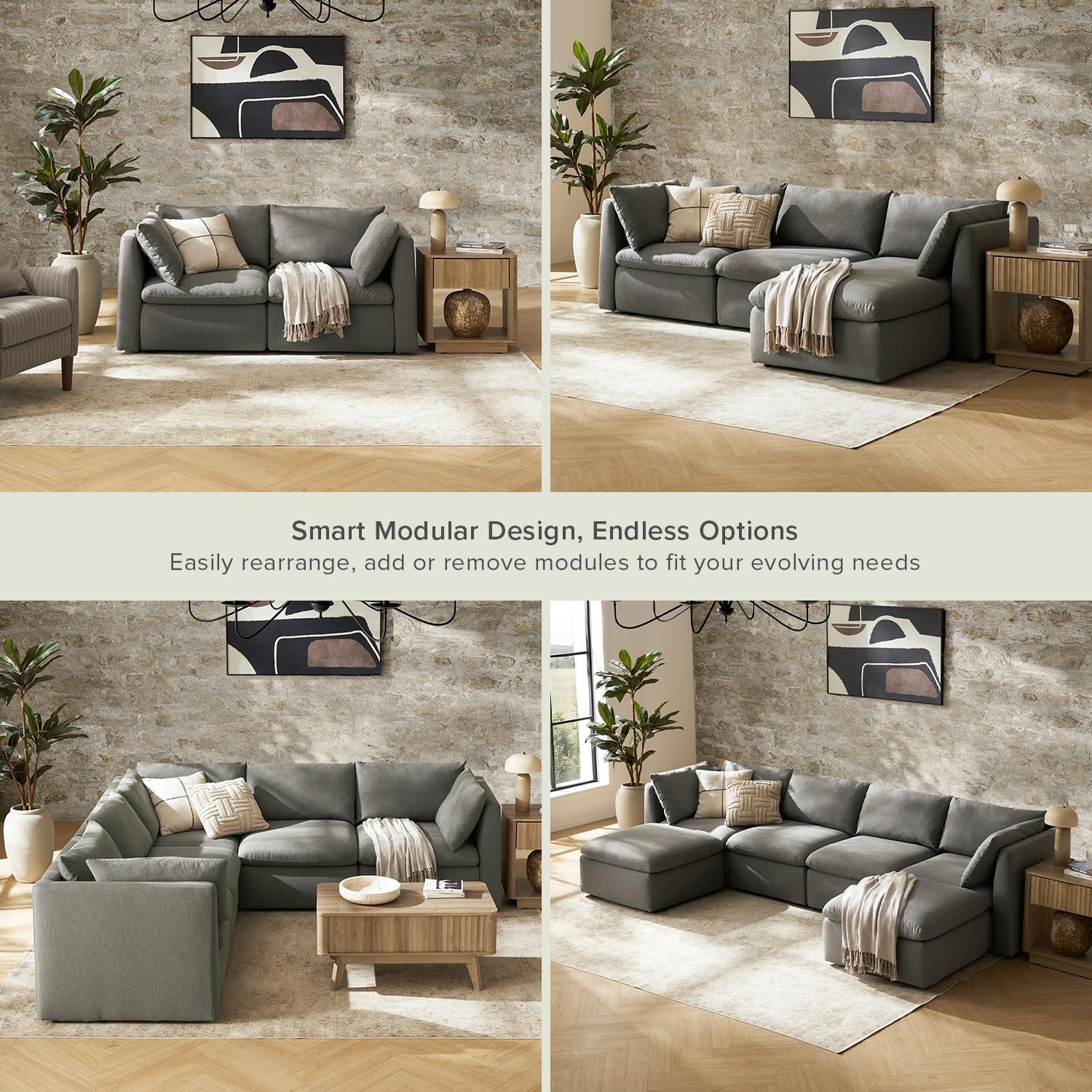mopio Oversized Modular Sectional Sofa with Fully Removable Covers and Storage, Convertible U, L-Shaped and Sleeper Sectional, Modern Couches with Ottoman Chaise (Stone Gray Fabric, Loveseat)