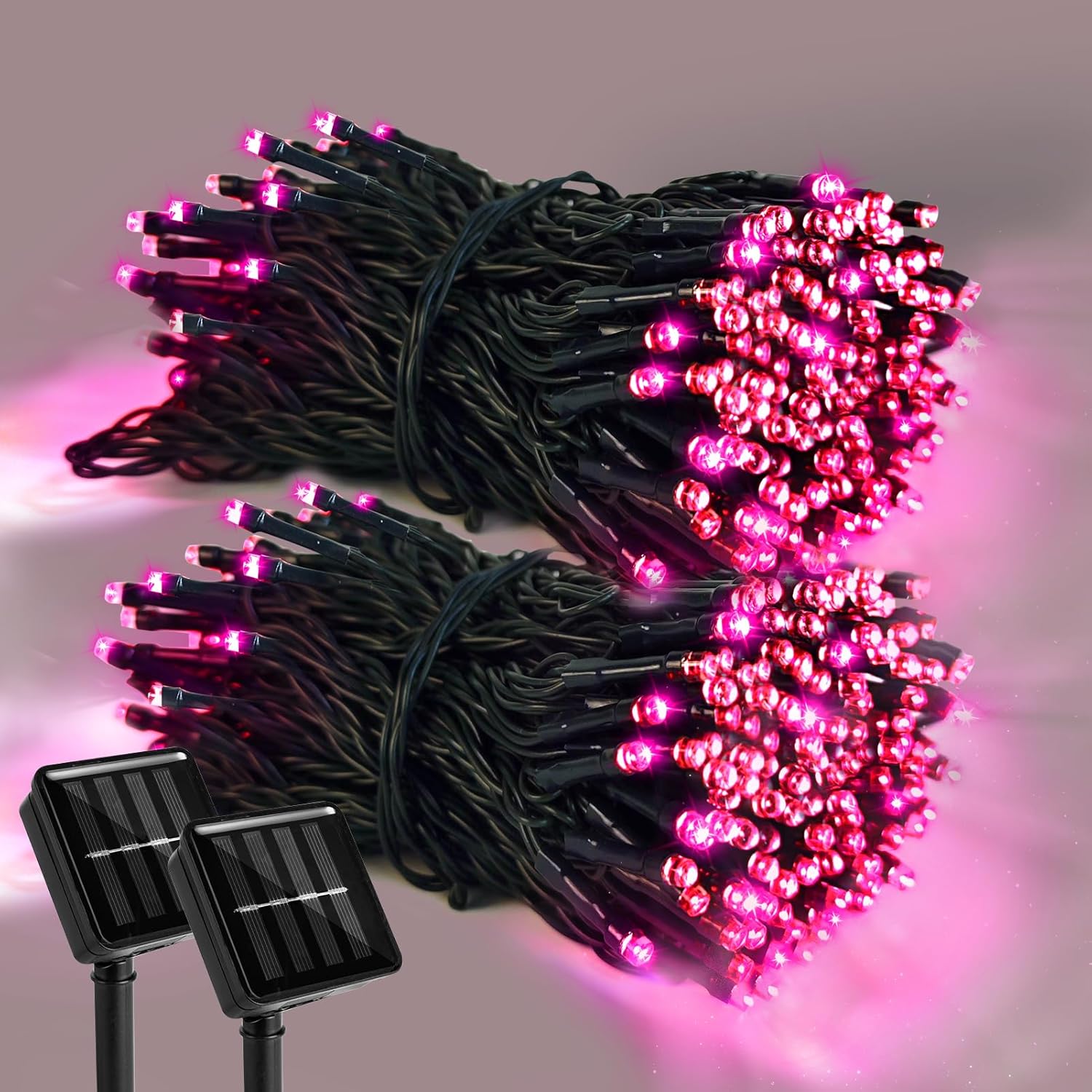 2 Pack 400 LED Solar Pink String Lights Valentine Decor, 8 Modes Solar String Lights for Outside, Waterproof and Solar Powered Outdoor Lights for Valentine Yard Garden Tree Wedding Party (Pink)