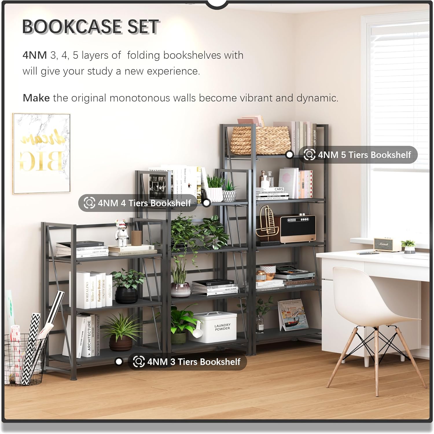 - ăThe Unique Foldable Design ShelfăAllows you to hide the bookshelf behind the corner of the wall, behind the cabinet, or behind the sofa, etc, which can save your space. When you move, you don't need to disassemble it, and you can easily take it with you