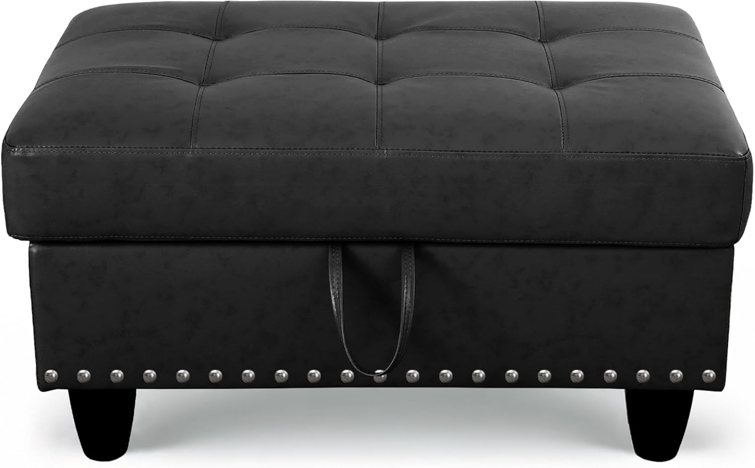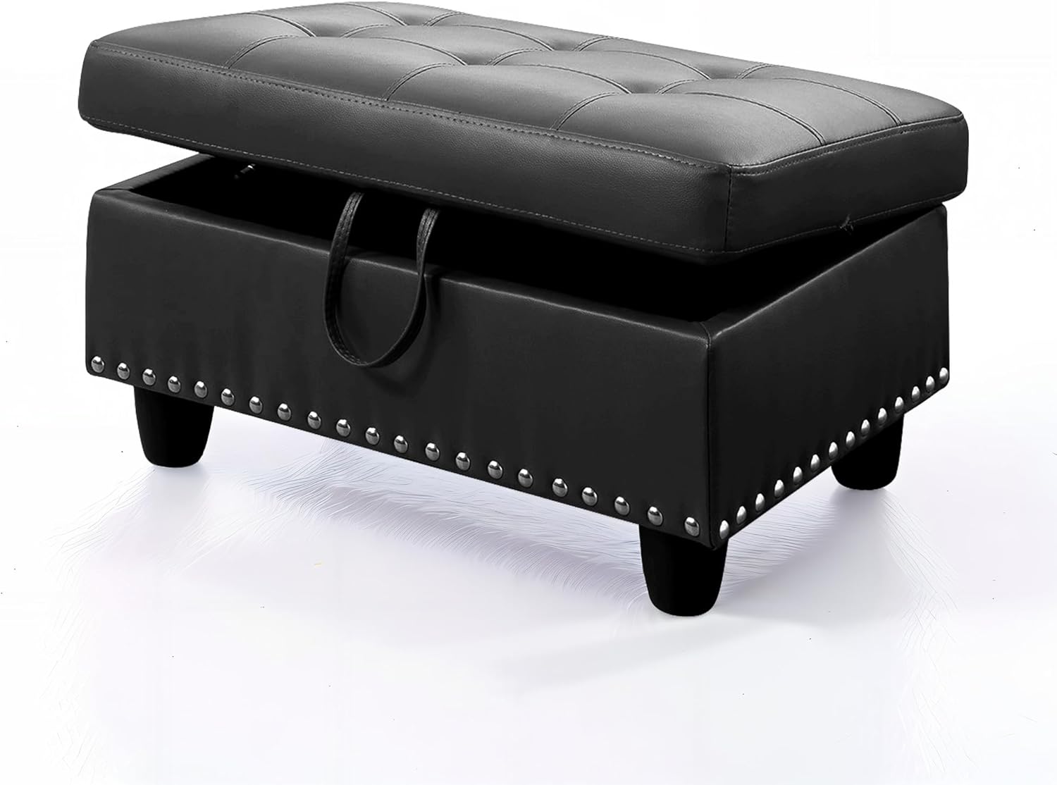 - PREMIUM MATERIALS: This storage ottoman features a thick foam cushion for added comfort. Built with a sturdy solid wood frame and durable plastic feet, it offers long-lasting quality while protecting your floors from scratches. The easy-to-clean faux leather surface gives it a sleek, modern look, and the smooth faux leather lid adds an extra layer of comfort for sitting. Perfect for any room, this ottoman combines style, durability, and functionality.