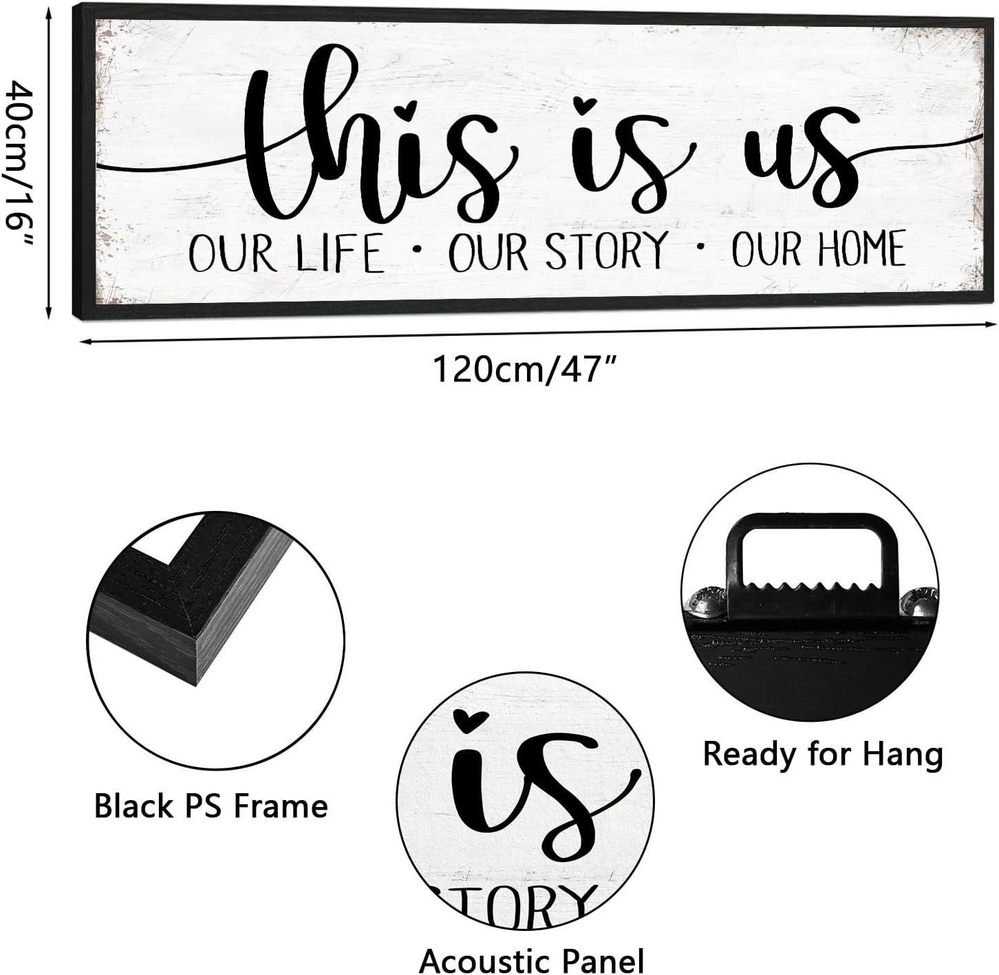 - Above Bed Wall Decor: Exquisite "This is Us Our Life Our Story Our Home" quote print is crafted with high-quality, sound-absorbing materials, this is us wall decor to create a serene atmosphere in your master bedroom, guest bedroom, or nursery. Elevate your home decor with this above bed wall decor and have a nice sleep throughout the night