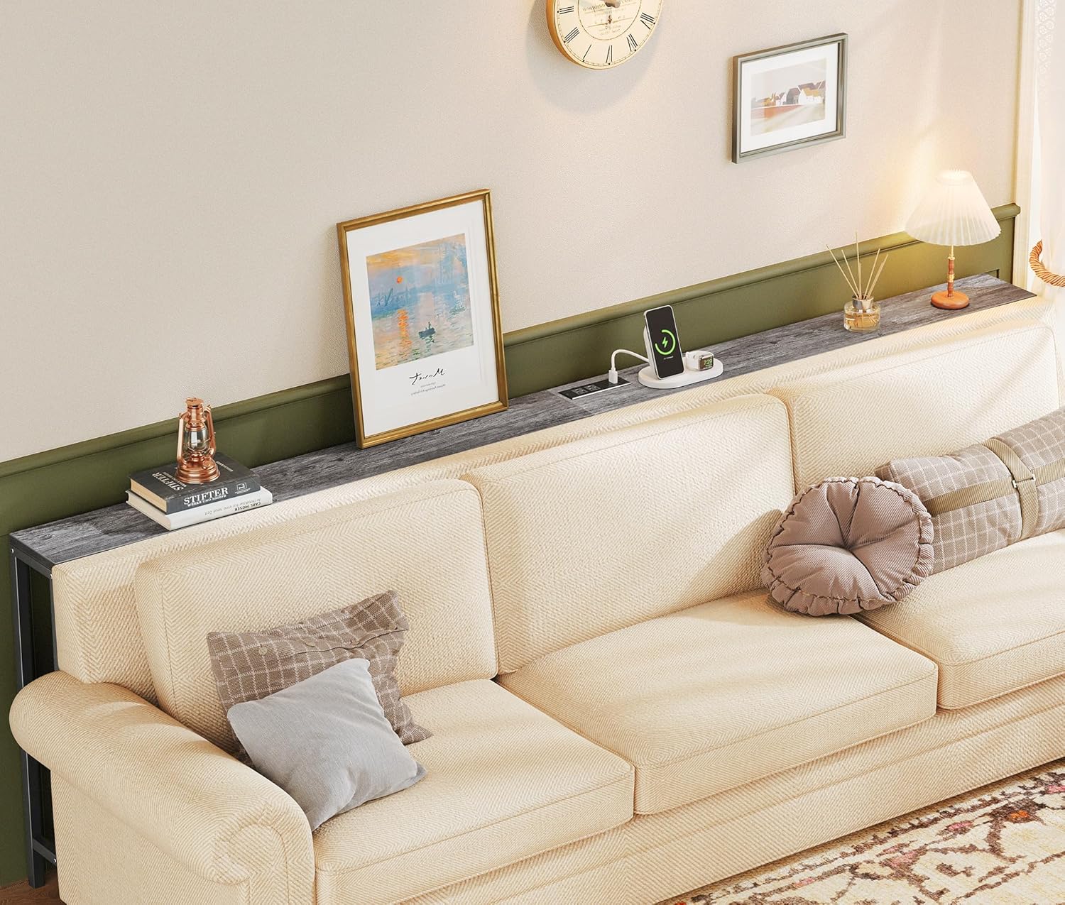 SUPERJARE 78.7 Inch Console Table with Outlet, Sofa Table with Charging Station, Narrow Hallway Entryway Table, Behind Couch Table, for Living Room, Charcoal Gray