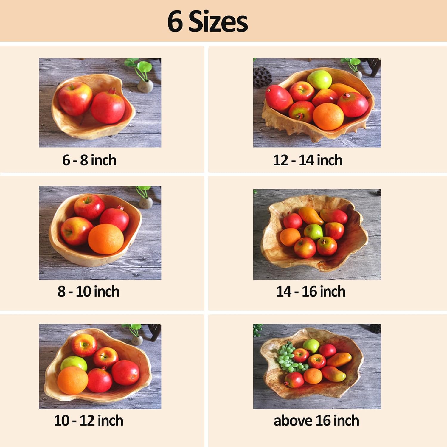- DIMENSION: There are 6 different sizes for you to choose: 6"-8" Diameter, 8"-10" Diameter, 10"-12" Diameter, 12"-14" Diameter, 14"-16" Diameter, above 16" Diameter. Please note that each rustic wooden bowl will be different in size even in same size range, some will be bigger, some will be smaller.