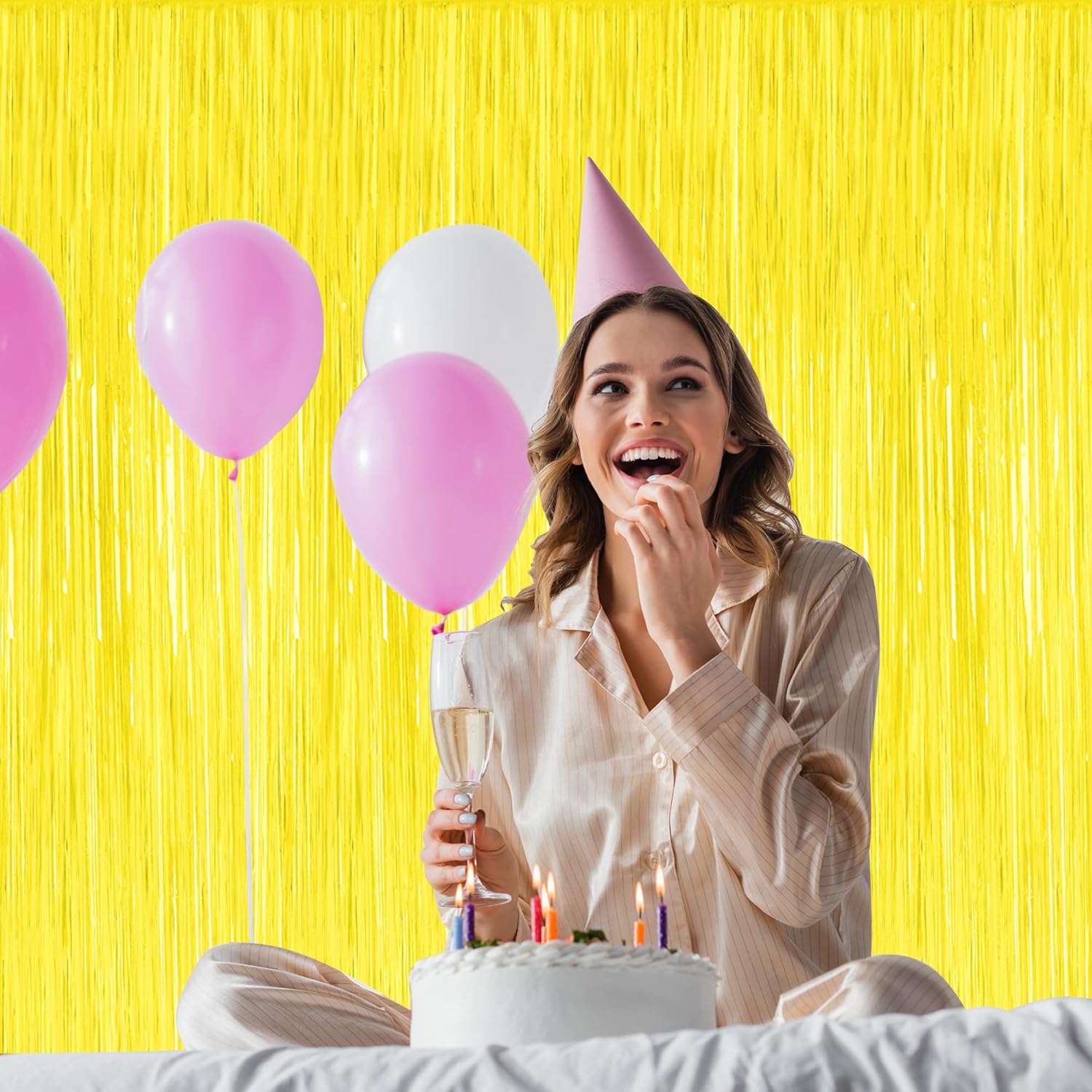 - Colorful Design: Each fringe backdrop are yellow color, with a reflective metallic finish, both fashionable and vibrant, and are suitable for your photo props.