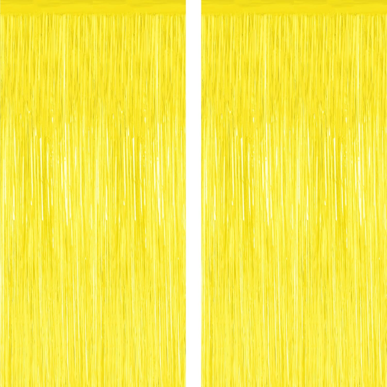 2 Pack Backdrop Curtains, 3.28 FT x 7.05 FT Yellow Color Tinsel Backdrop, Metallic Foil Backdrop Fringe Curtains Party Streamer, Party Decorations Photo Backdrop for Birthday