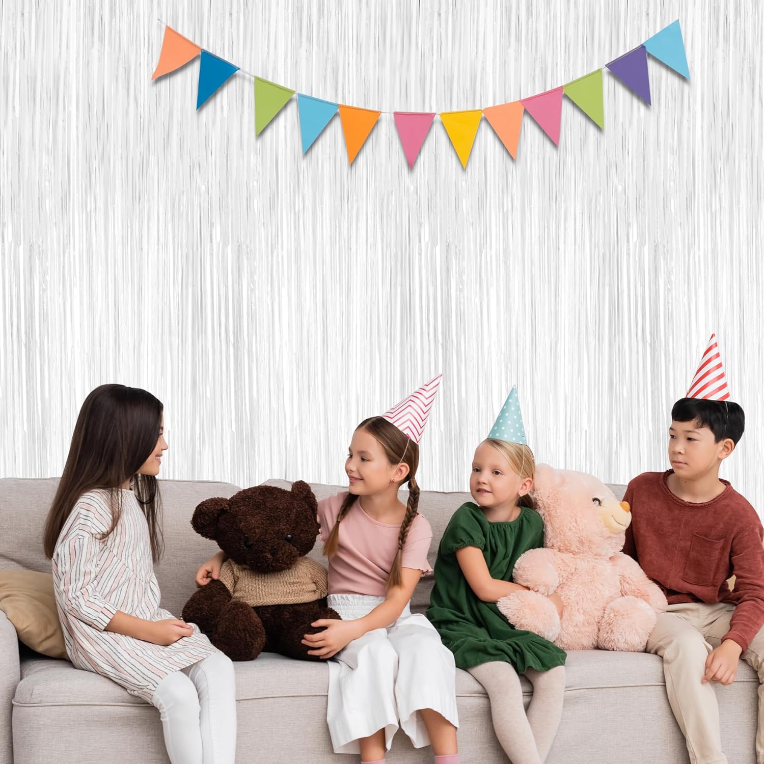 2 Pack Tinsel Backdrop, 3.28 x 7.05 Feet White Party Decorations, Metallic Foil Fringe Curtains Streamer Backdrop, Party Supplies Photo Props for Birthday Anniversaries Wedding