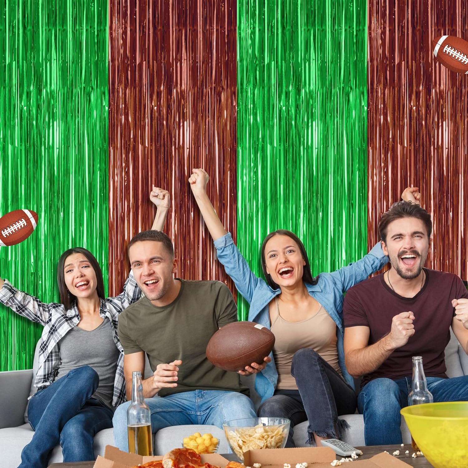 2 Pack Football Party Decorations, 3.28 FT x 7.05 FT Tinsel Backdrop, Brown Green Foil Fringe Curtains Metallic Party Streamer, Football Party Supplies Game Day Decorations 2025