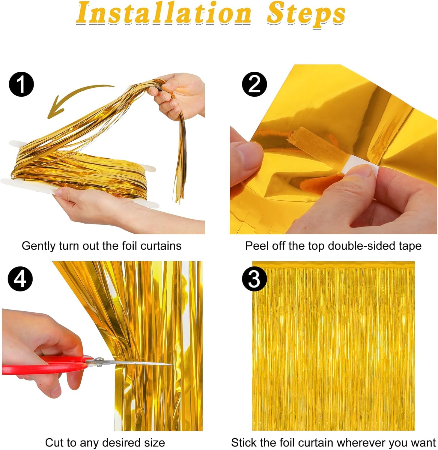 - Package Includes: This set contains 2 pack gold foil curtains, each measuring 3.28 FT x 7.05 FT, oversized design allows free cutting according to your needs.