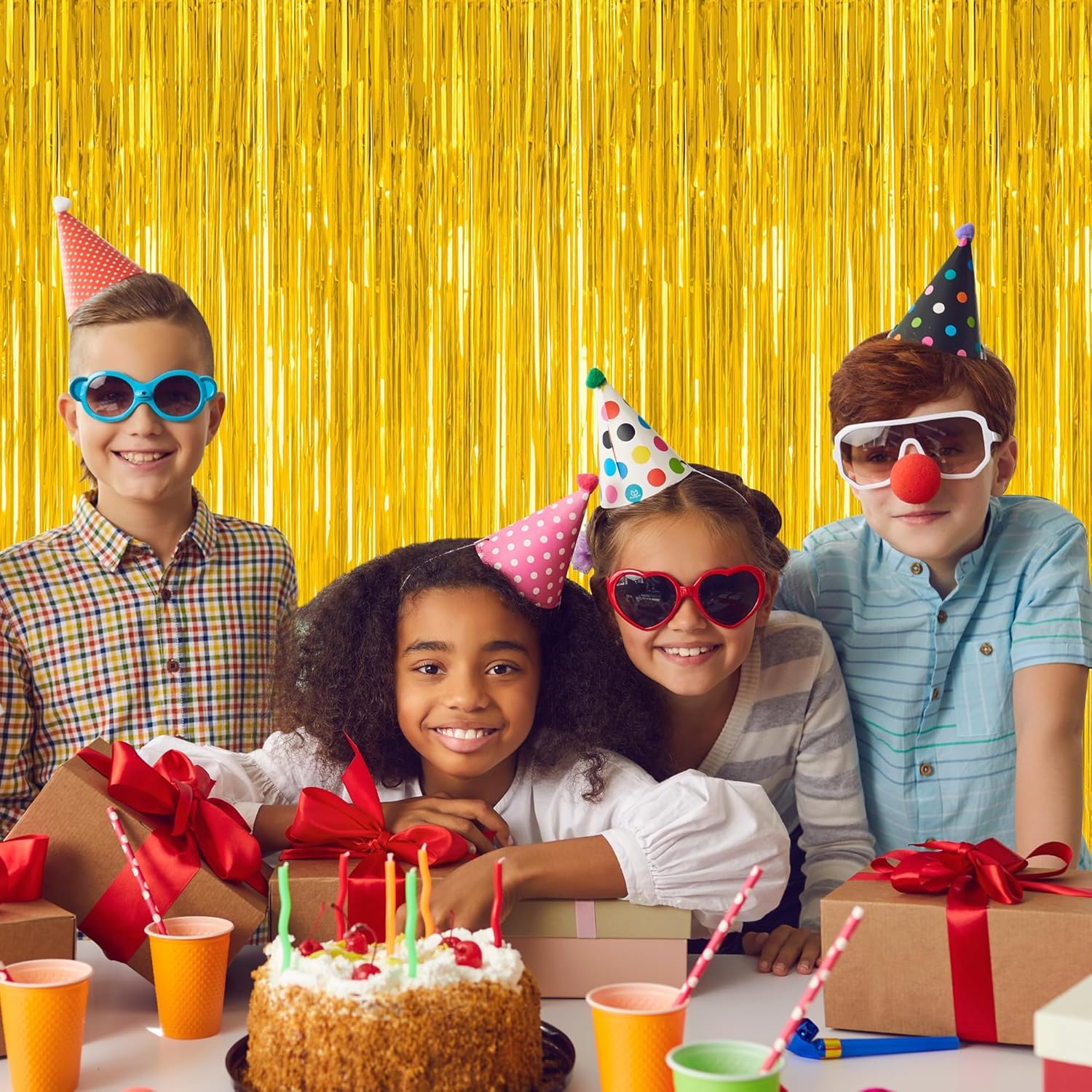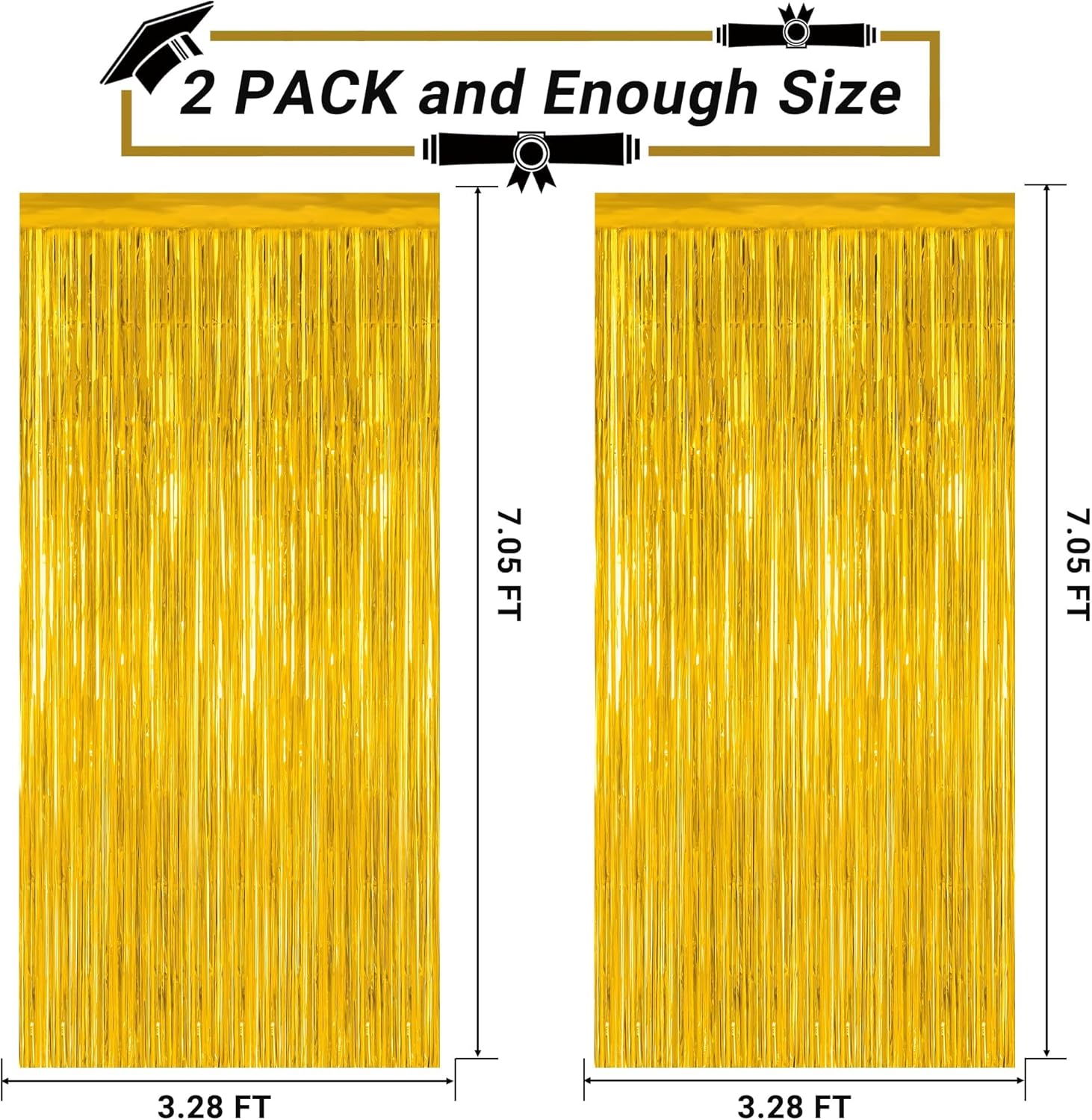 2 Pack Gold Tinsel Backdrop, 3.28 FT x 7.05 FT Metallic Fringe Curtain, Gold Color Graduation Backdrop Party Streamers, Party Supplies Door Decorations for Birthday Anniversaries