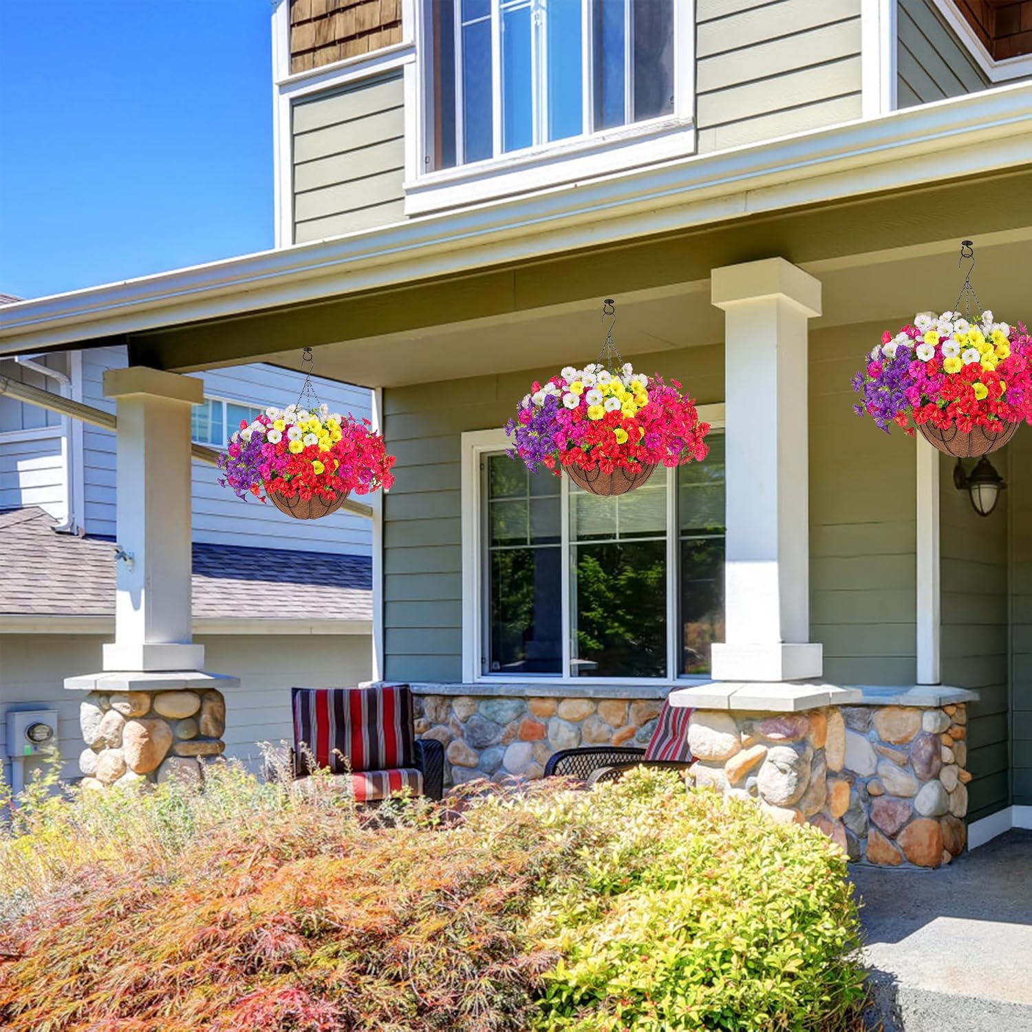 - π’ All-Occasion Decoration: These artificial outdoor hanging flowers basket are perfect for garden, porch, patio, balcony, yard, home, front door, and outside decoration. These artificial hanging flowers with a basket provide the beauty of real flowers without the need for maintenance.