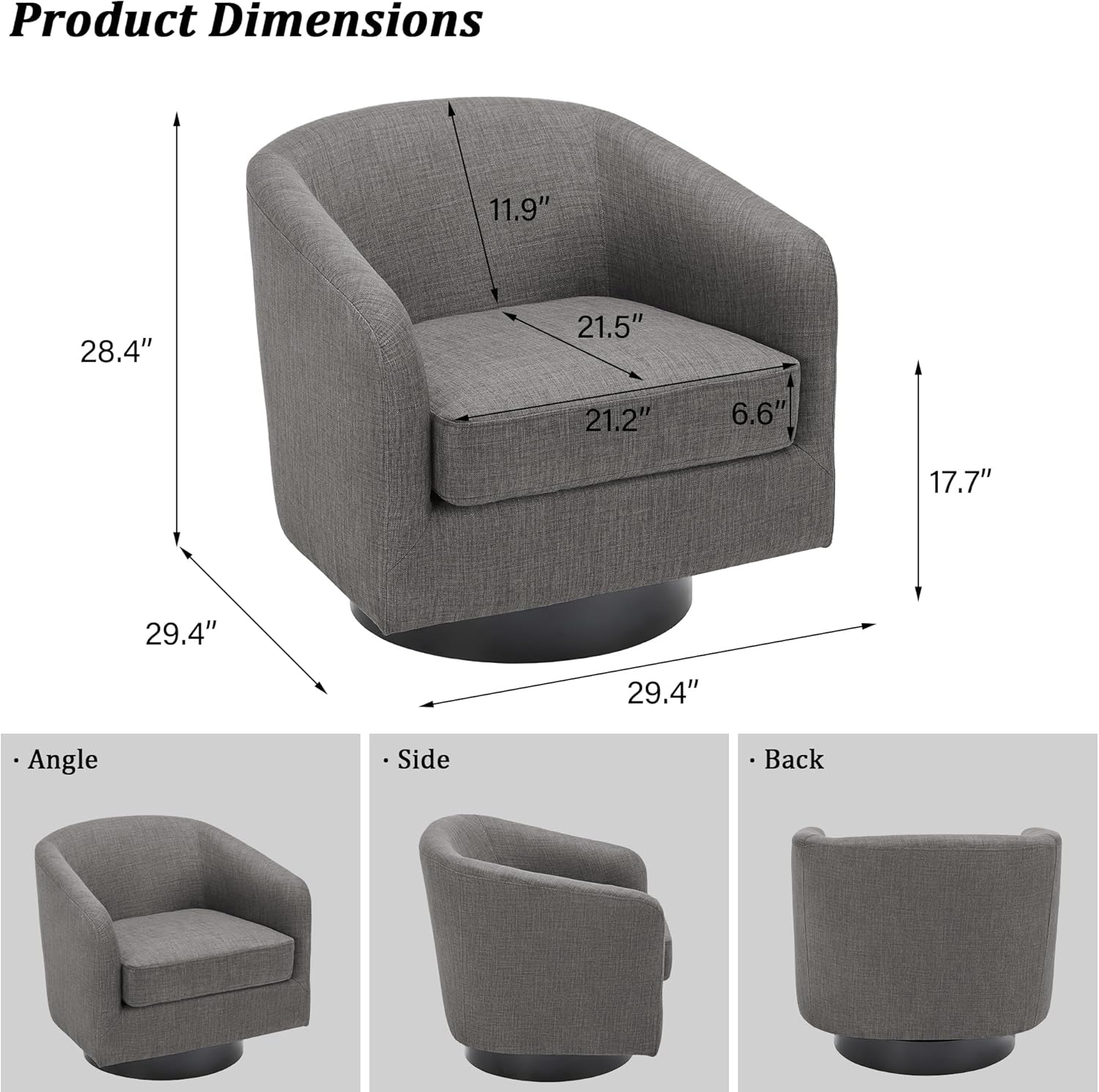 - 360 Degree Swivel Barrel Chair: This 360 degree round swivel chair designed for your leisure comfort. Heavy solid turntable, making it more stable and not wobbly
