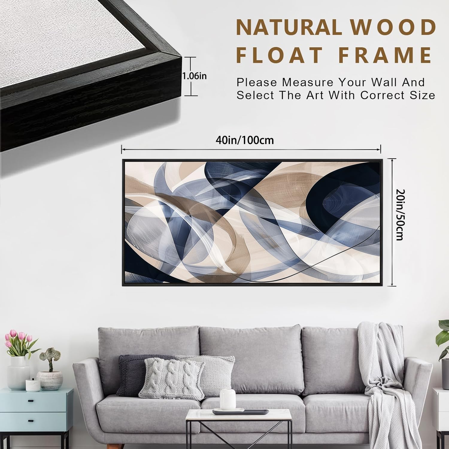 Modern Geometric Abstract Canvas Wall Art 40 x 20 inches Navy Blue and Beige Tones Canvas Painting Framed Home Artwork Living Room Decor for Bedroom Office Wall Decor