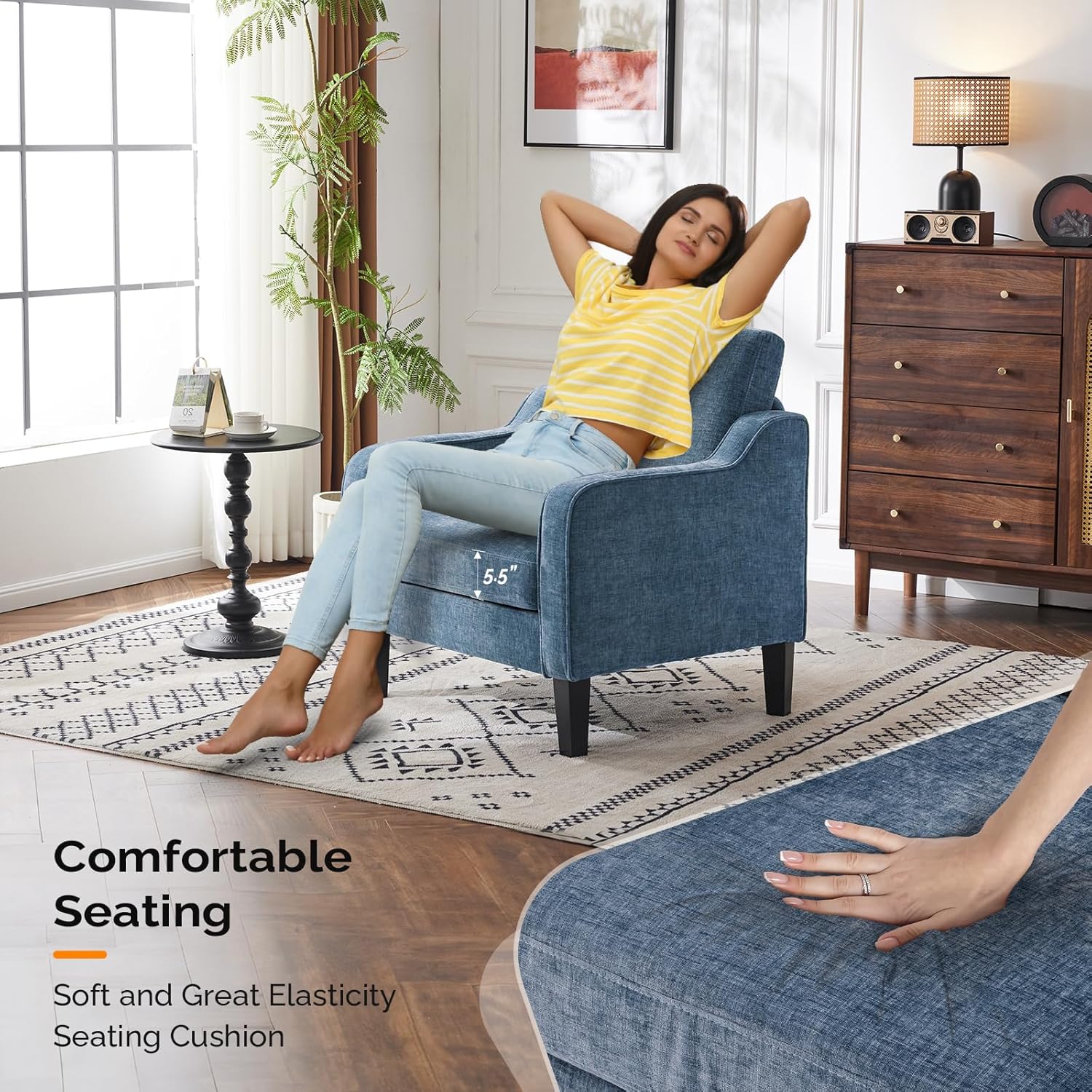 - Comfortable CushioningâThis accent chair features a 5.5" thick seat cushion made with metal pocket springs and high-density foam, ensuring comfort without excessive sinking, making it easy to stand up.