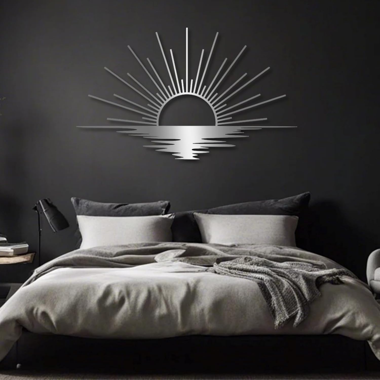 Sunrise Metal Wall Art, Metal Sun Wall Decor, Metal Sun Outdoor Decor, Large Metal Sun Wall Art, Sun Wall Art, Boho Sun Wall Art, Sunshine Metal Sign, Living Room Bedroom Wall Hangings (Silver, 47"x 27"| 120x71cm)