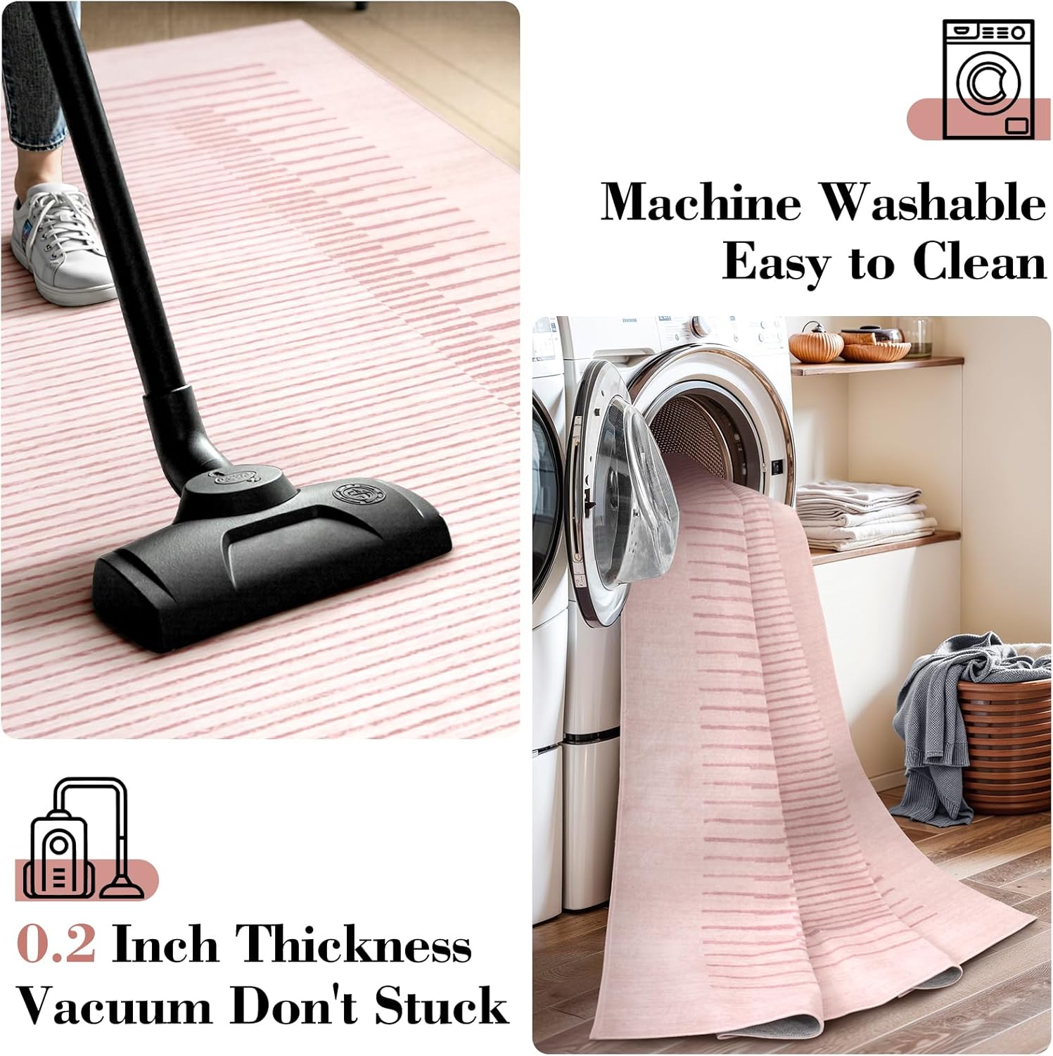 - 【Pet Friendly】: This striped rug can survive those little accidents, pet odors, and regular thorough vacuuming; The low pile machine washable design prevents animal hair from being hidden easily, making cleaning convenient and saving maintenance costs