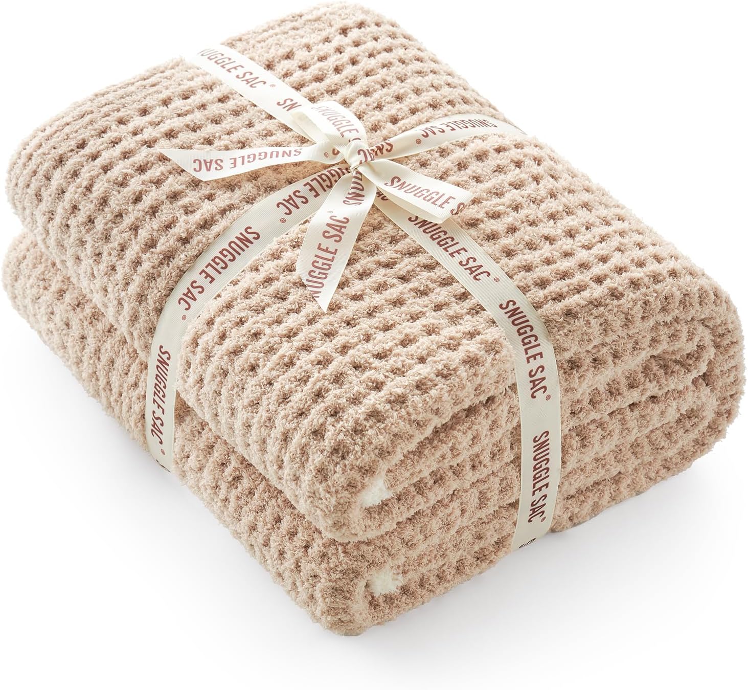 Snuggle Sac Waffle Throw Blanket for Couch Bed Sofa 50x60 inches, Reversible Beige Blanket Microfiber Fluffy Fuzzy Cozy Knit Soft Throws for Women Mothers Birthday Gifts