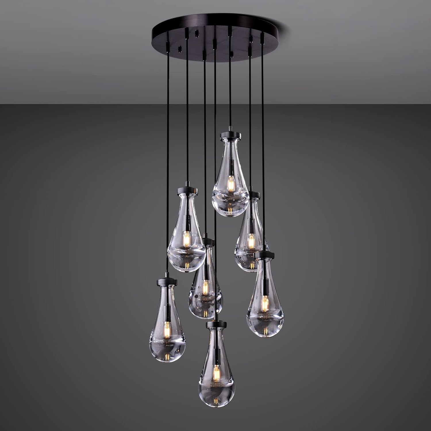 - 【Hand-blown 7-Light Raindrop Pendant Light】Classic raindrop glass shade is hand-blown by artisans, each raindrop shade is unique. Bronze raindrop pendant lighting fits a variety of decor styles.