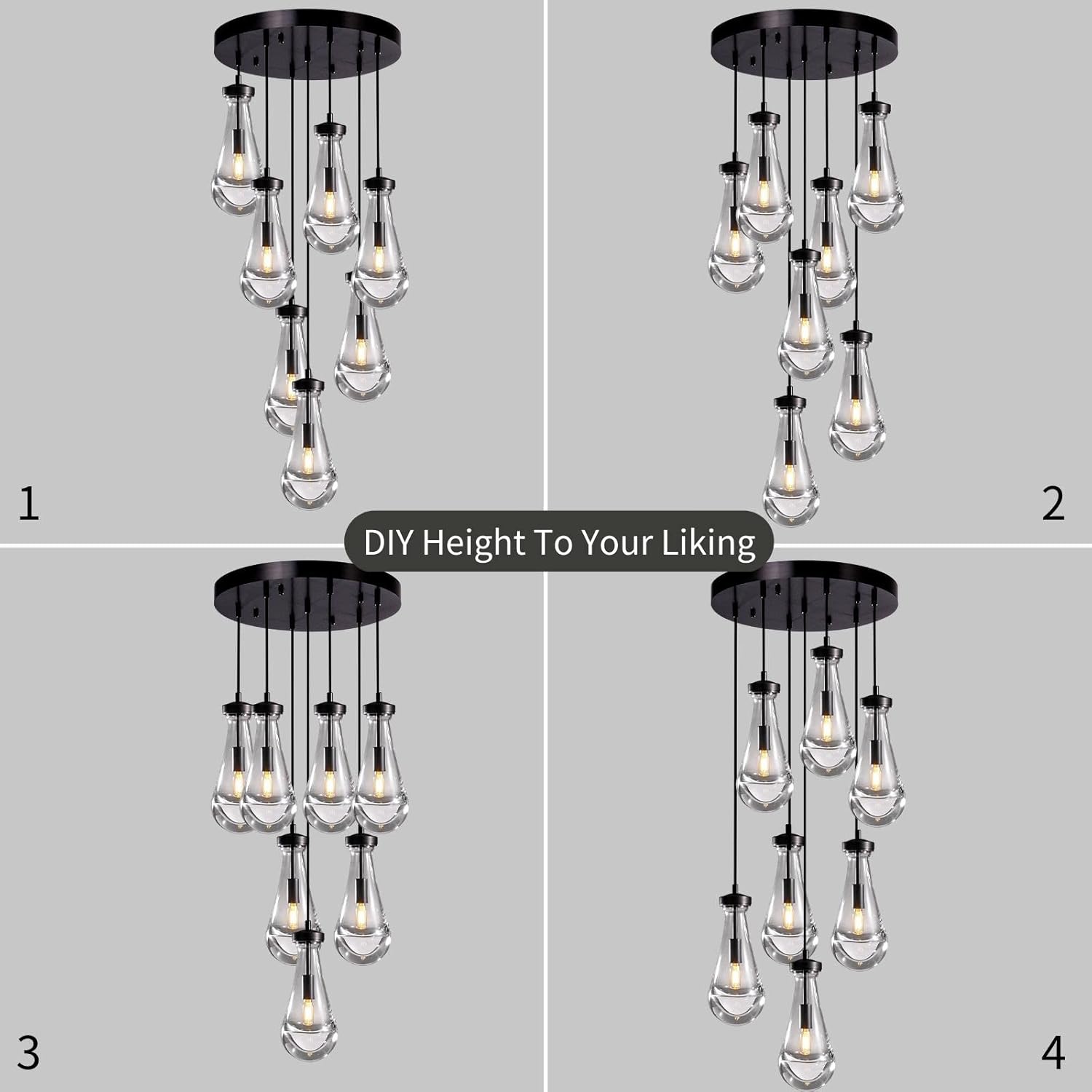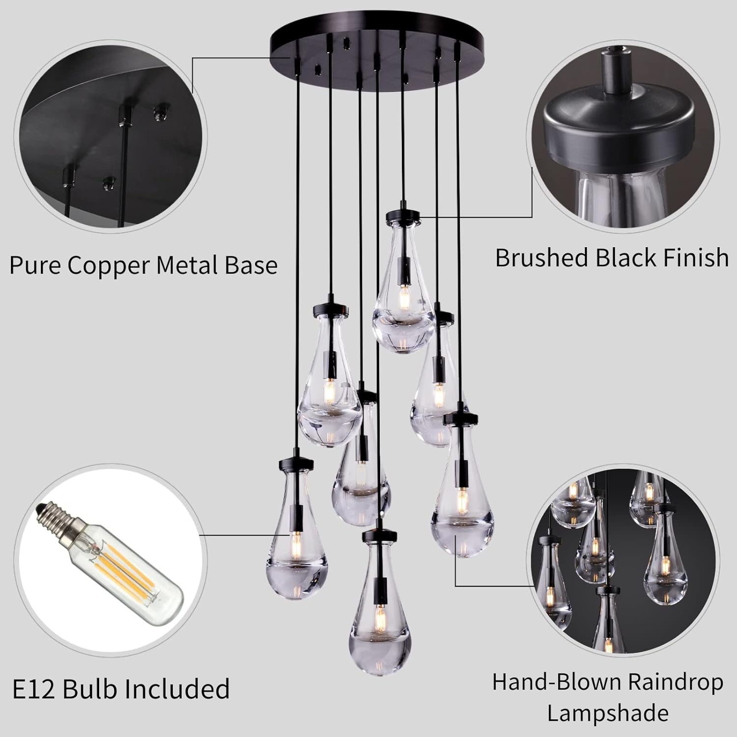 - 【Provide 2-Year Service】Black 7-light raindrop chandeliers for your kitchen island, bathroom, bedroom, foyer, hallway, staircase. Ideal chandelier for dining room, kitchen chandeliers over table, hanging pendant light, island pendant lights for kitchen.