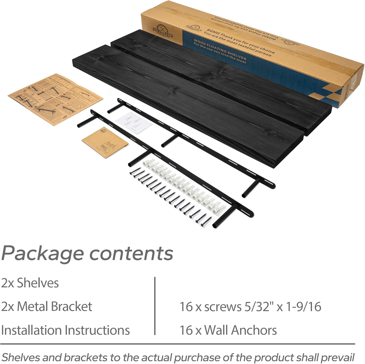 BGMG Wood Floating Shelves 48 inch, Wide Rustic Wooden Wall Shelves for Bathroom Living Room Bedroom Kitchen Farmhouse Set of 2-48x 6.7 x1.25 inch- Black