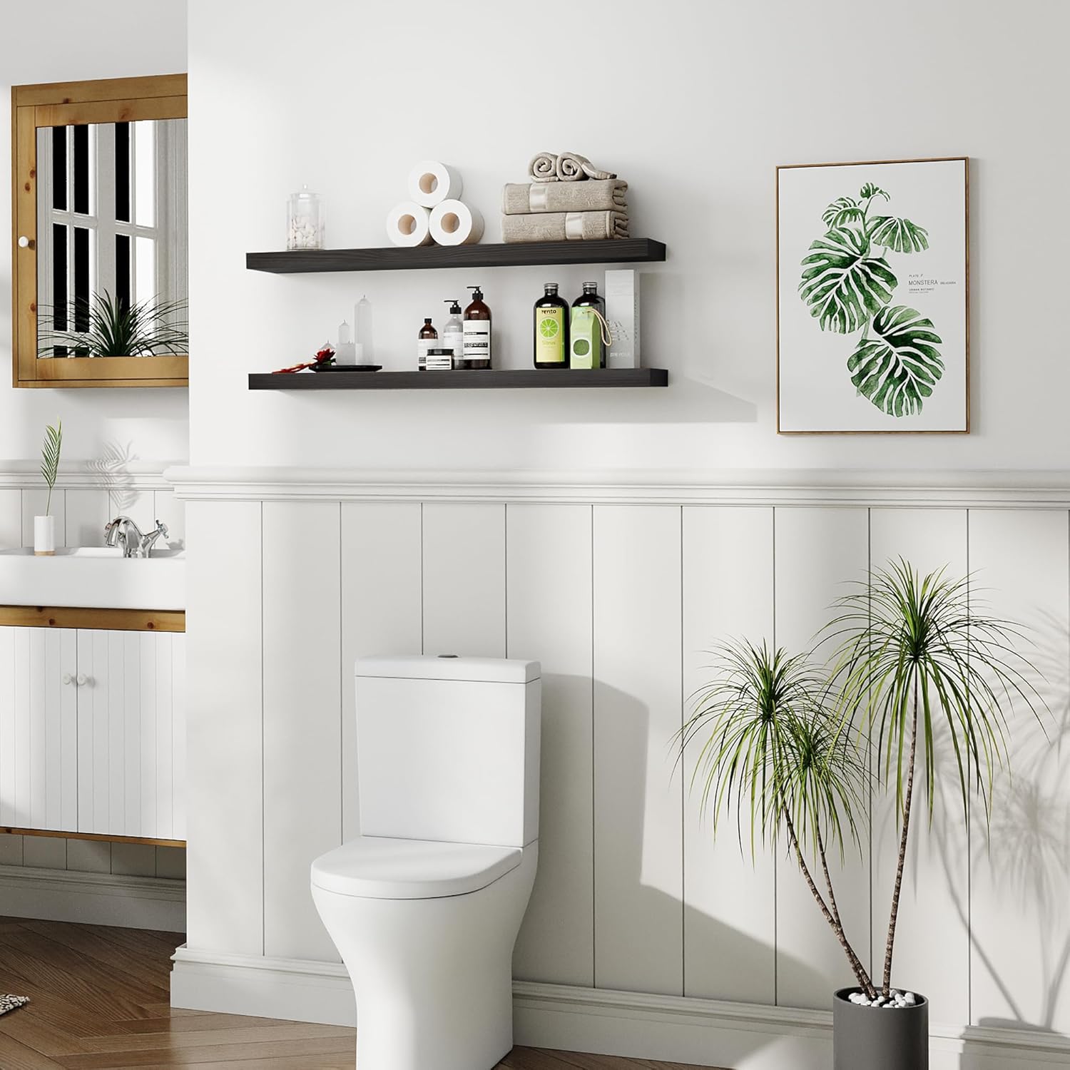 - Style : Rustic farmhouse floating shelves
