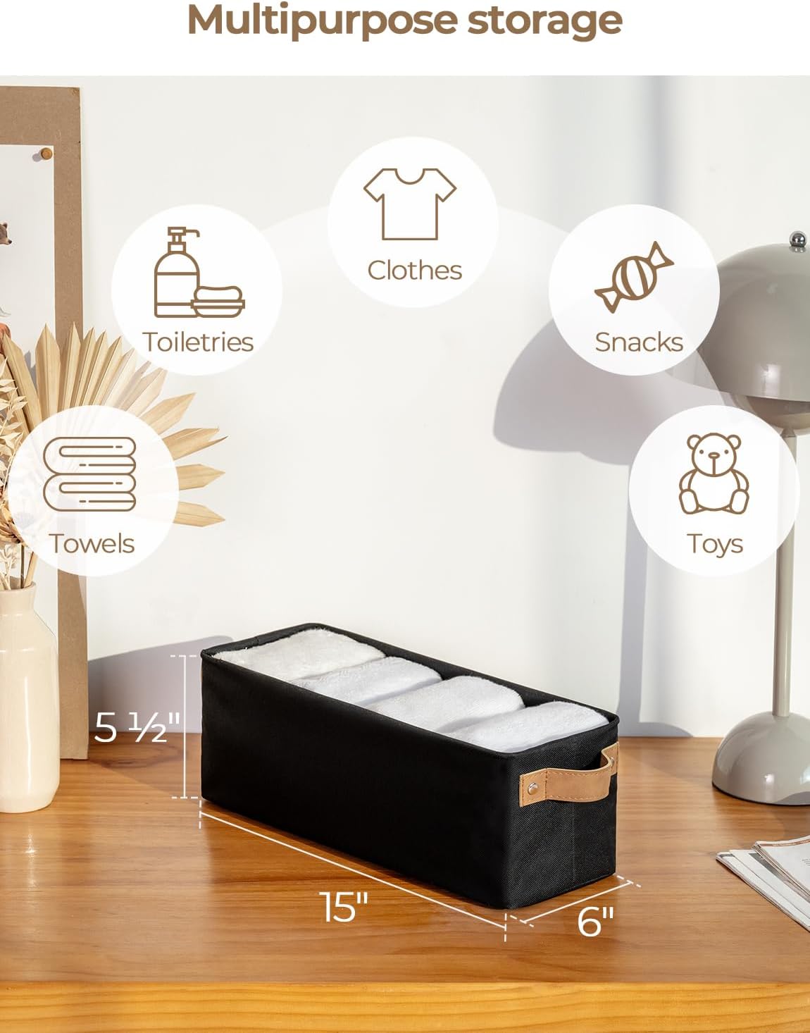 StorageWorks Narrow Storage Bins, Small Basket for Closet and Shelves, Fabric Organizer with Handles, Toilet Paper Storage, Black, 2-Pack