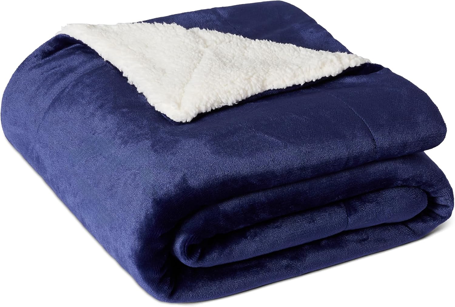 Amazon Basics Reversible Sherpa Throw Blanket, Navy, 50"x60"