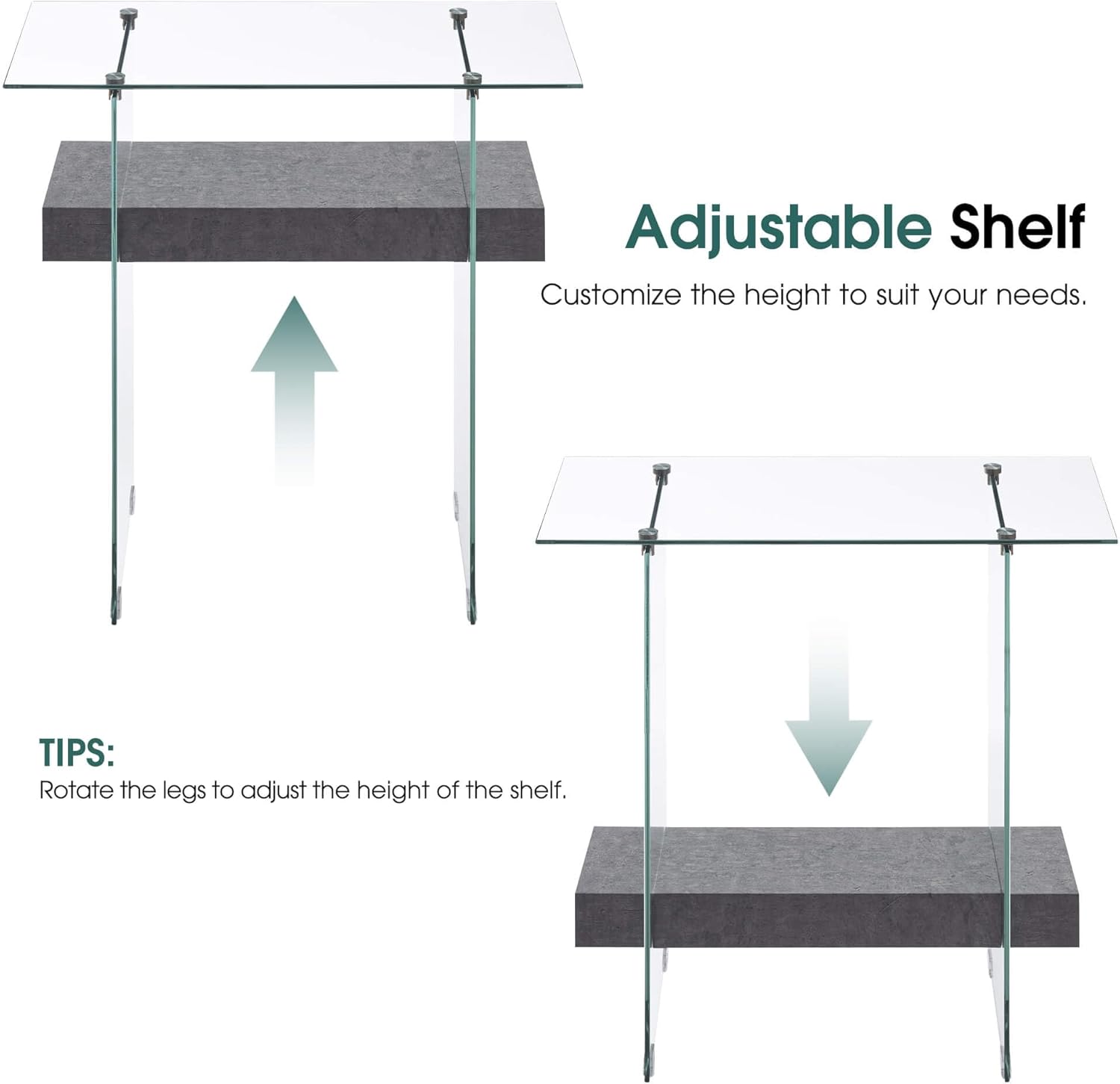 - Modern Glass Console Table: 8mm thick clear tempered glass tabletop with a smooth, beveled edge provides a perfect platform for framed photos or a stylish pair of lamps. Meanwhile, the two-tempered glass leg below gives your home an on-trend look. The console table can hold a weight capacity of 100 LBS