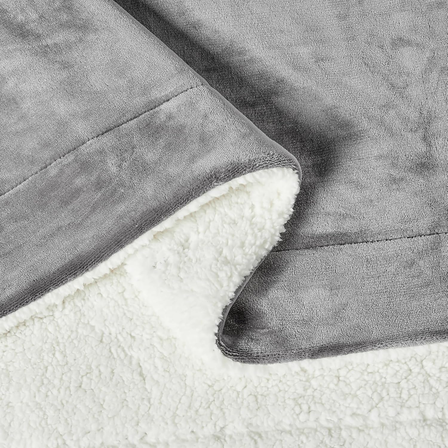 - Reversible design in Dark Gray with 220 GSM velvety flannel on one side and 260 GSM plush sherpa on the reverse