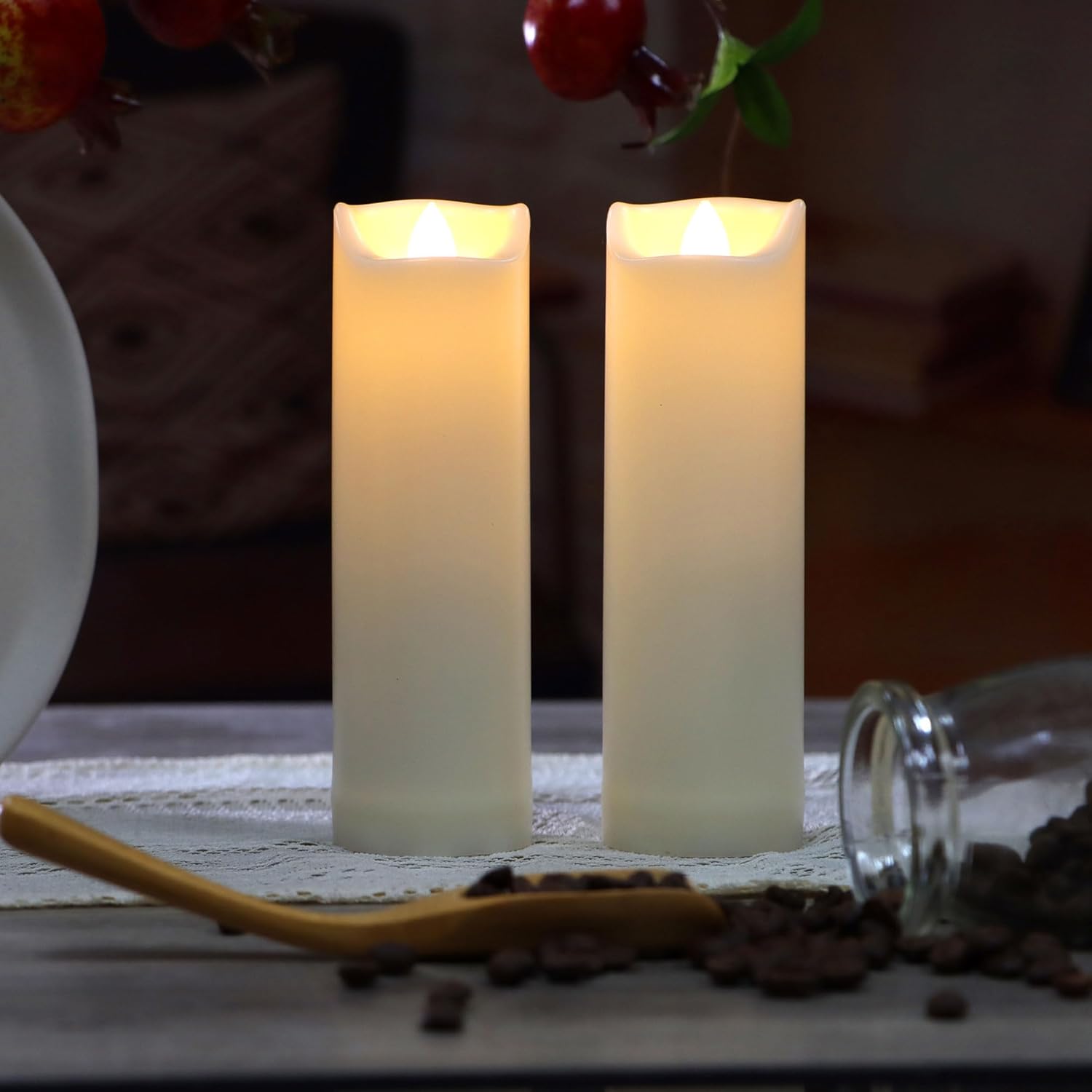 - For outdoor and indoor use. These plastic battery candles are waterproof and designed for outdoor use to decorate your hurricane lantern, garden, yard, patio, swimming pool, or an outdoor activity such as a BBQ party. Of course, the resin pillar candle can be used indoor to decorate your fireplace and rooms as well. Flameless candle creates a warm, peace, and romantic ambiance.