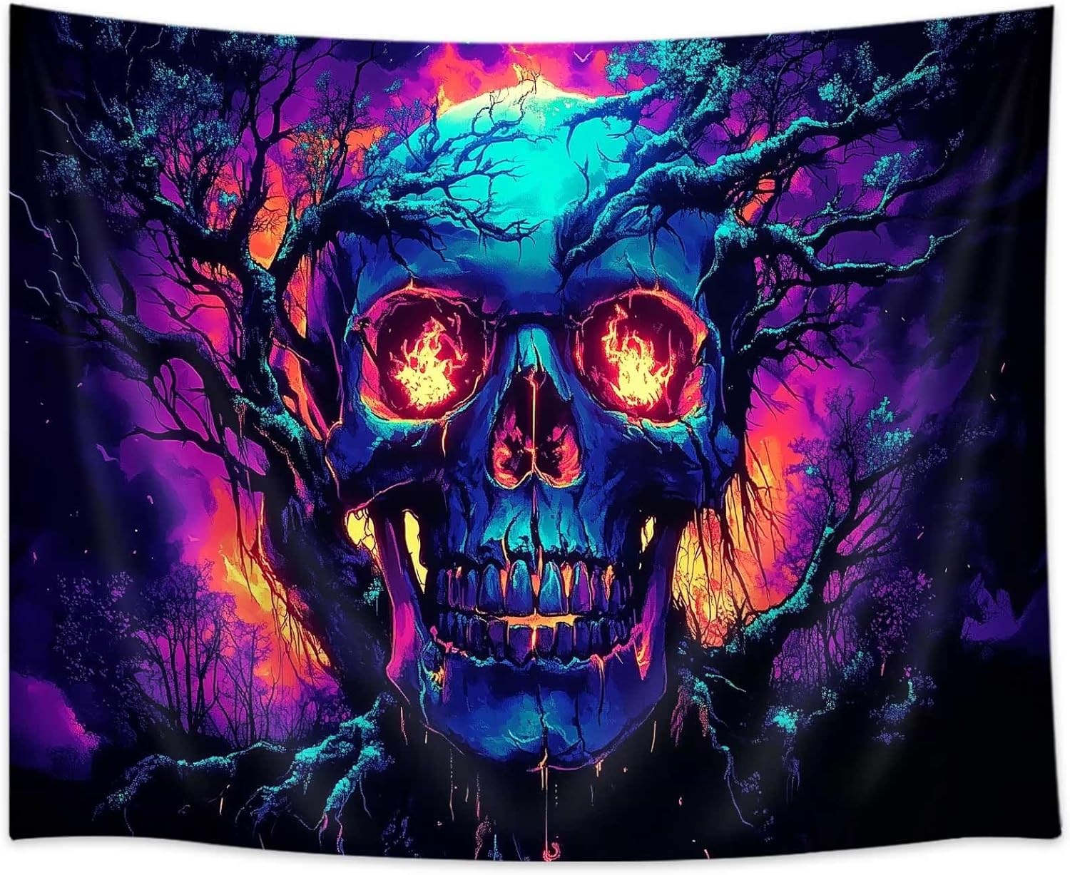 Xiaoput Blacklight Fire Skull Tapestry for Bedroom, Trippy UV Reactive Burning Skeleton Forest Wall Hanging Tapestries, Scary Dark Horror Glow in the Dark Tapestries for Living Room Home Dorm 60X51IN