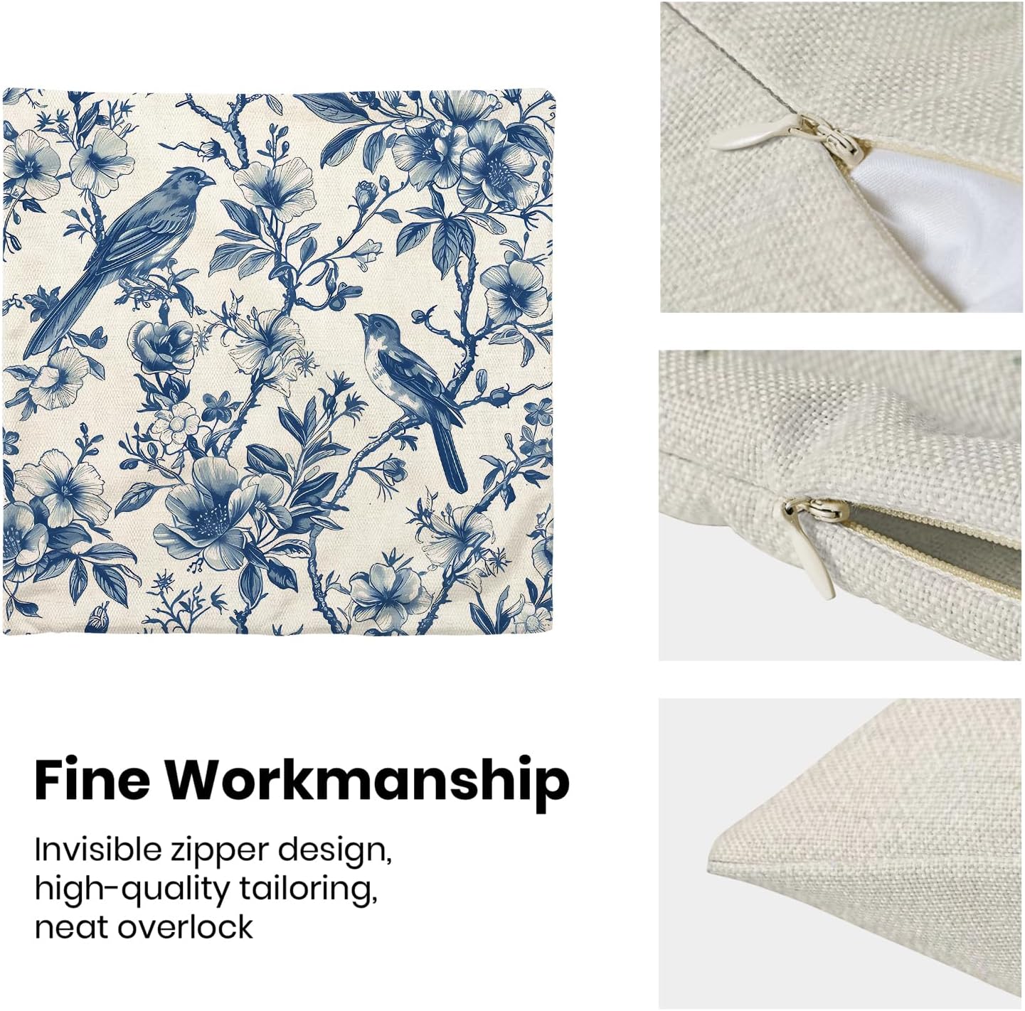 - 【Square Pillow Covers Size】 Chinoiserie flower birds pillow case set includes 2 pcs of farmhouse couch pillow covers (NO Pillow). Home decor farmhouse pillow covers measures 18x18 inch/ 45x45 cm. All the floral decor throw pillow covers have a hidden zipper. It is easy to insert or remove the pillow core to replace the spring pillowcase. Easy to clean and wash, sturdy and not easy to damage.