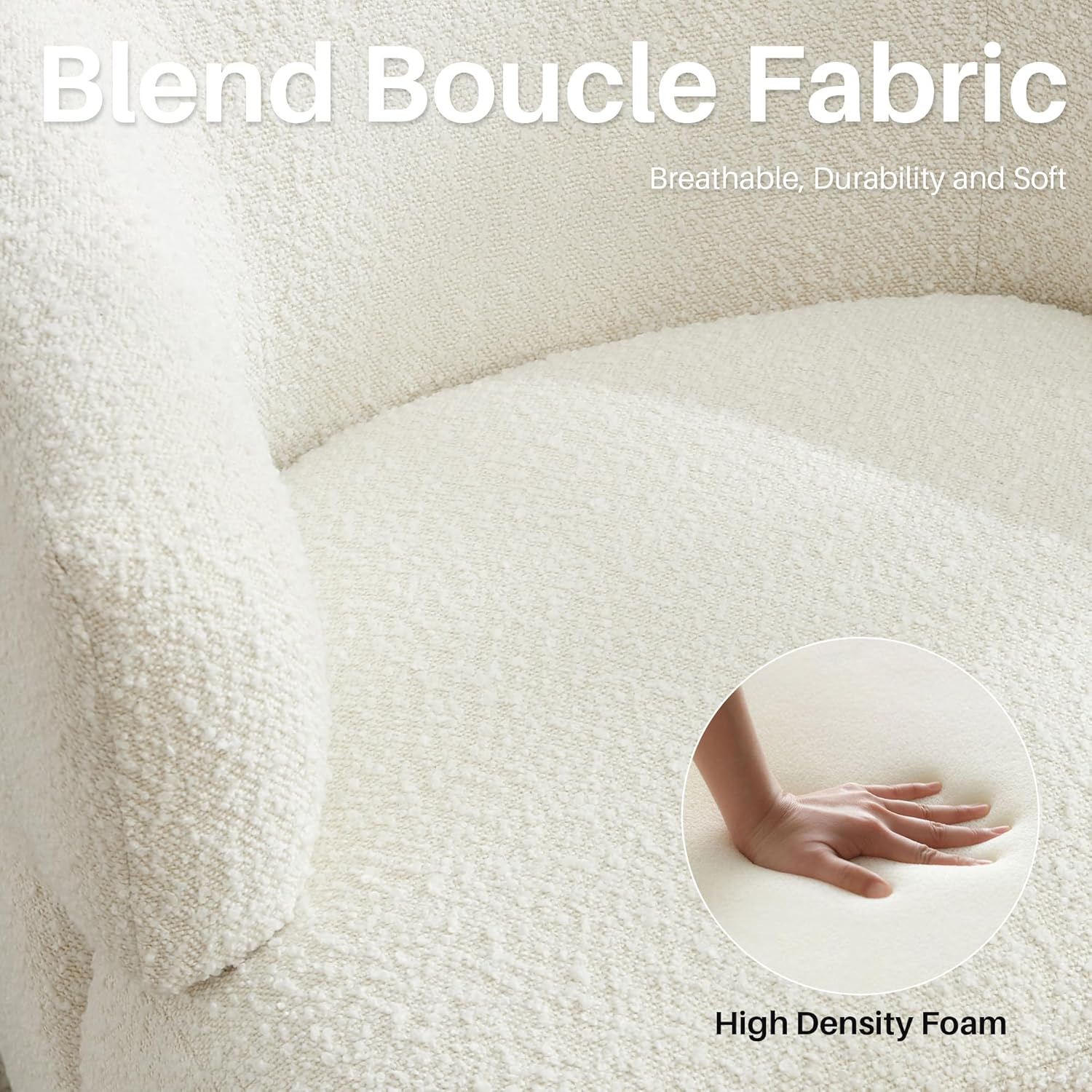 - LAMB WOOL BARREL CHAIR: This elegant swivel chair, adorned with soft sherpa, offers superb comfort with lamb wool foam cushions, allowing for hours of cozy sitting. The ergonomic curved backrest of the upholstered seat provides additional comfort